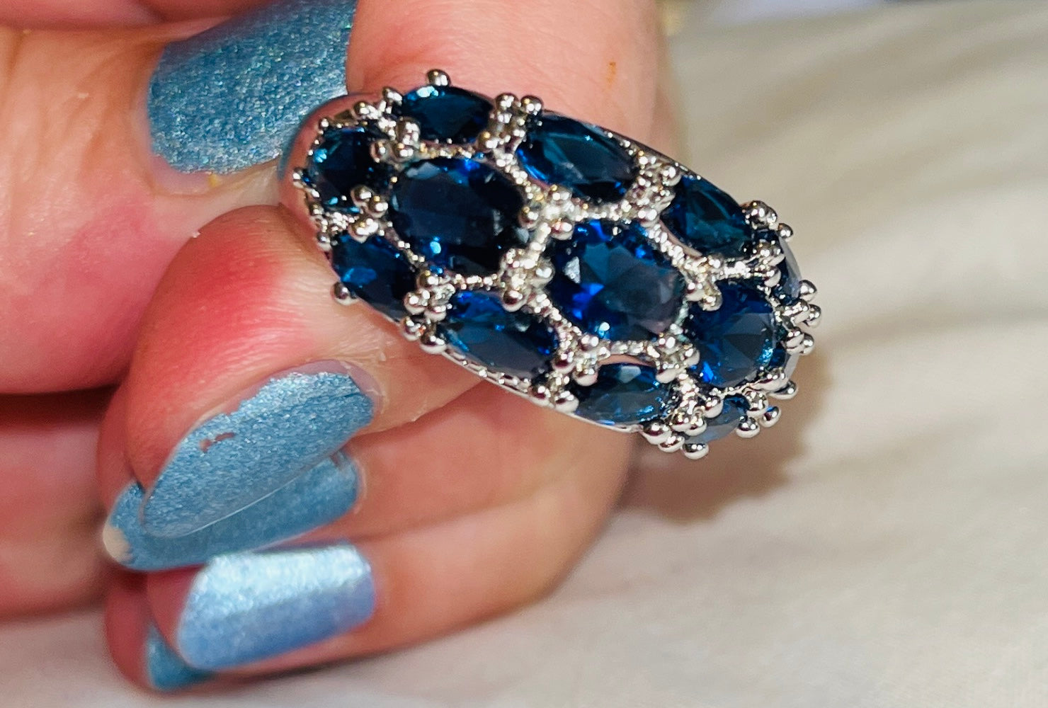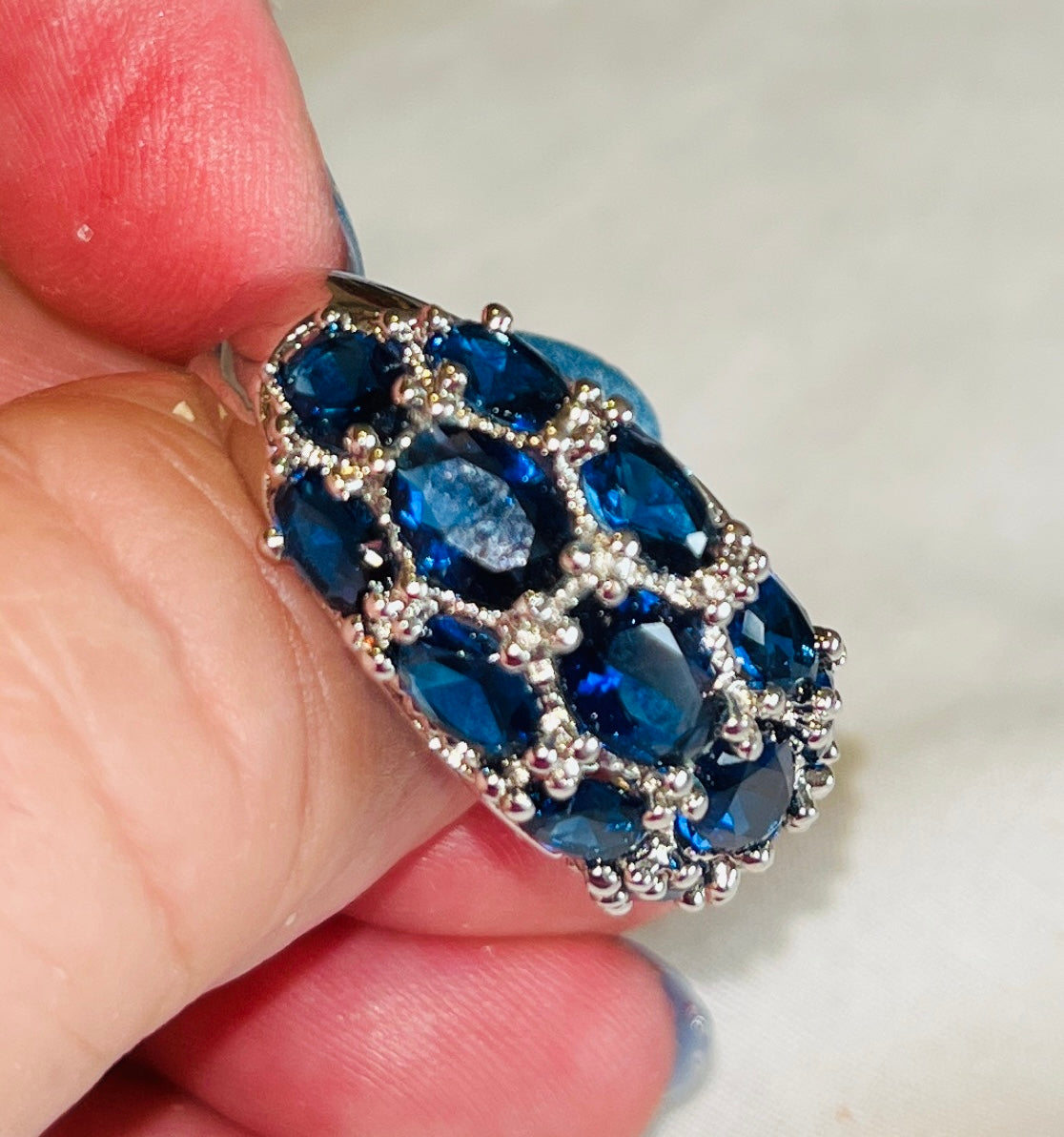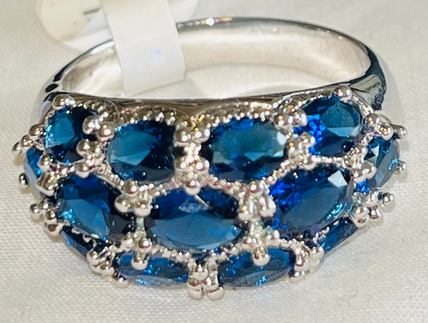 13-CZ Sapphire Blue Cluster Ring