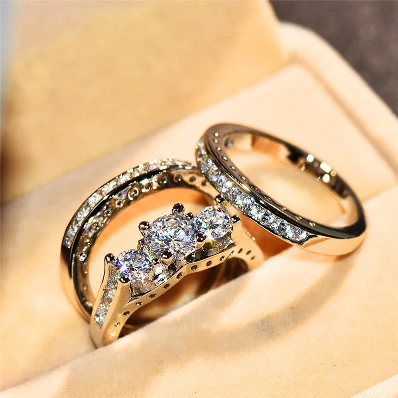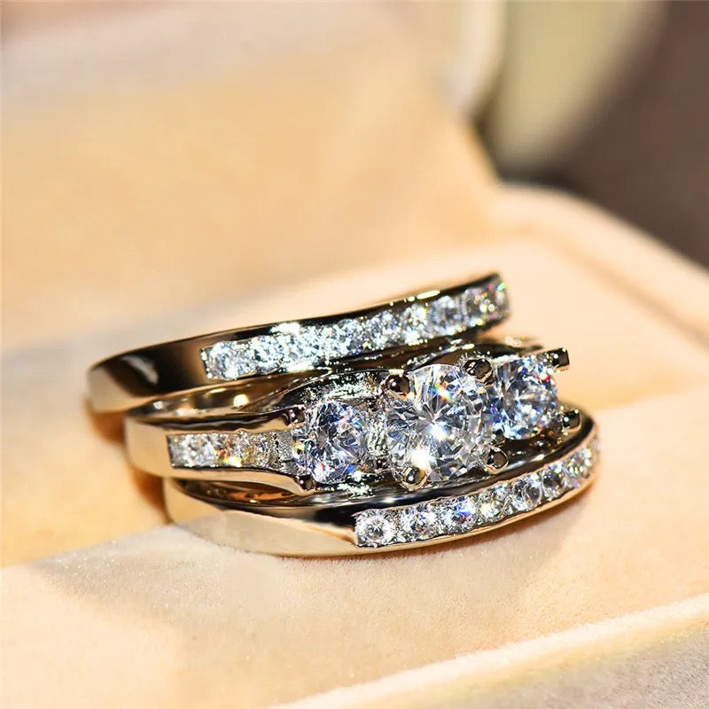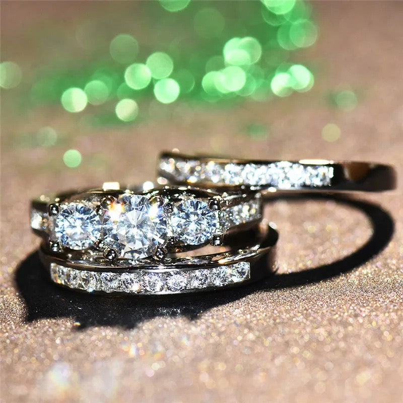 Silver-tone 3 pc Cubic Zirconia Trinity Ring. Size 5. Wear together, separately or gift.