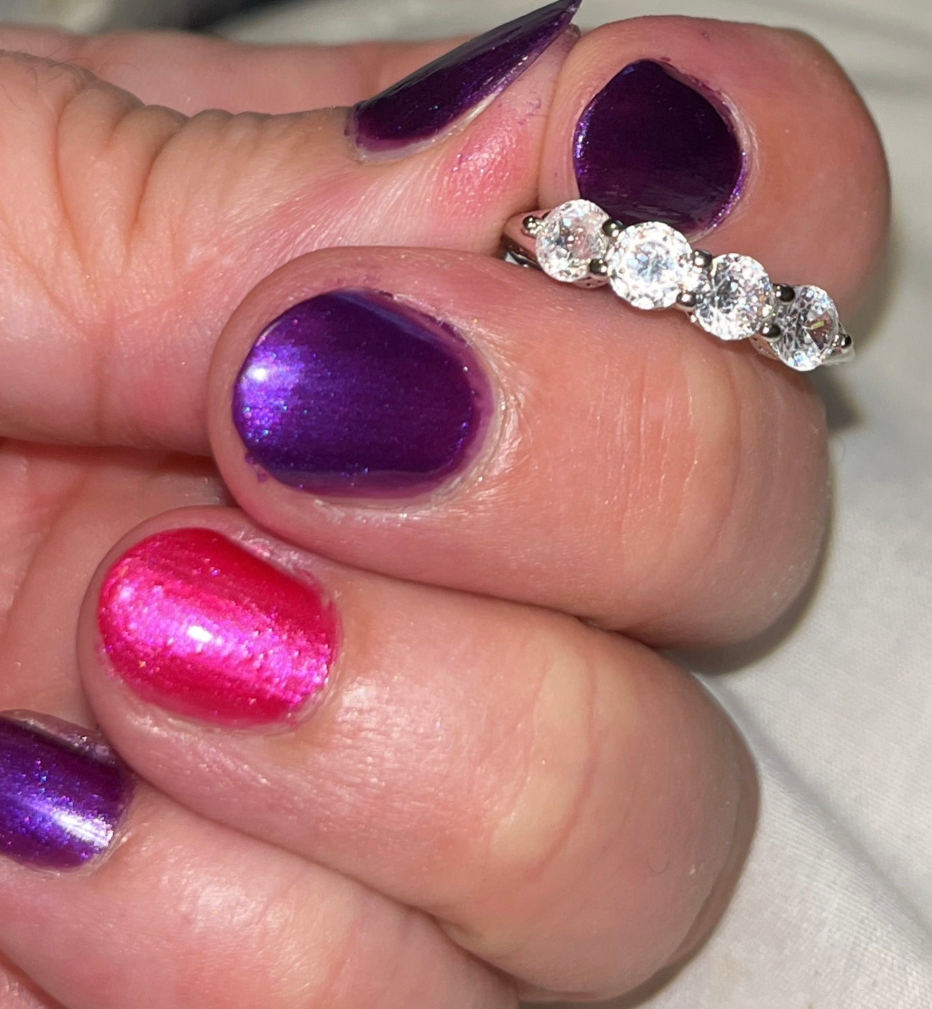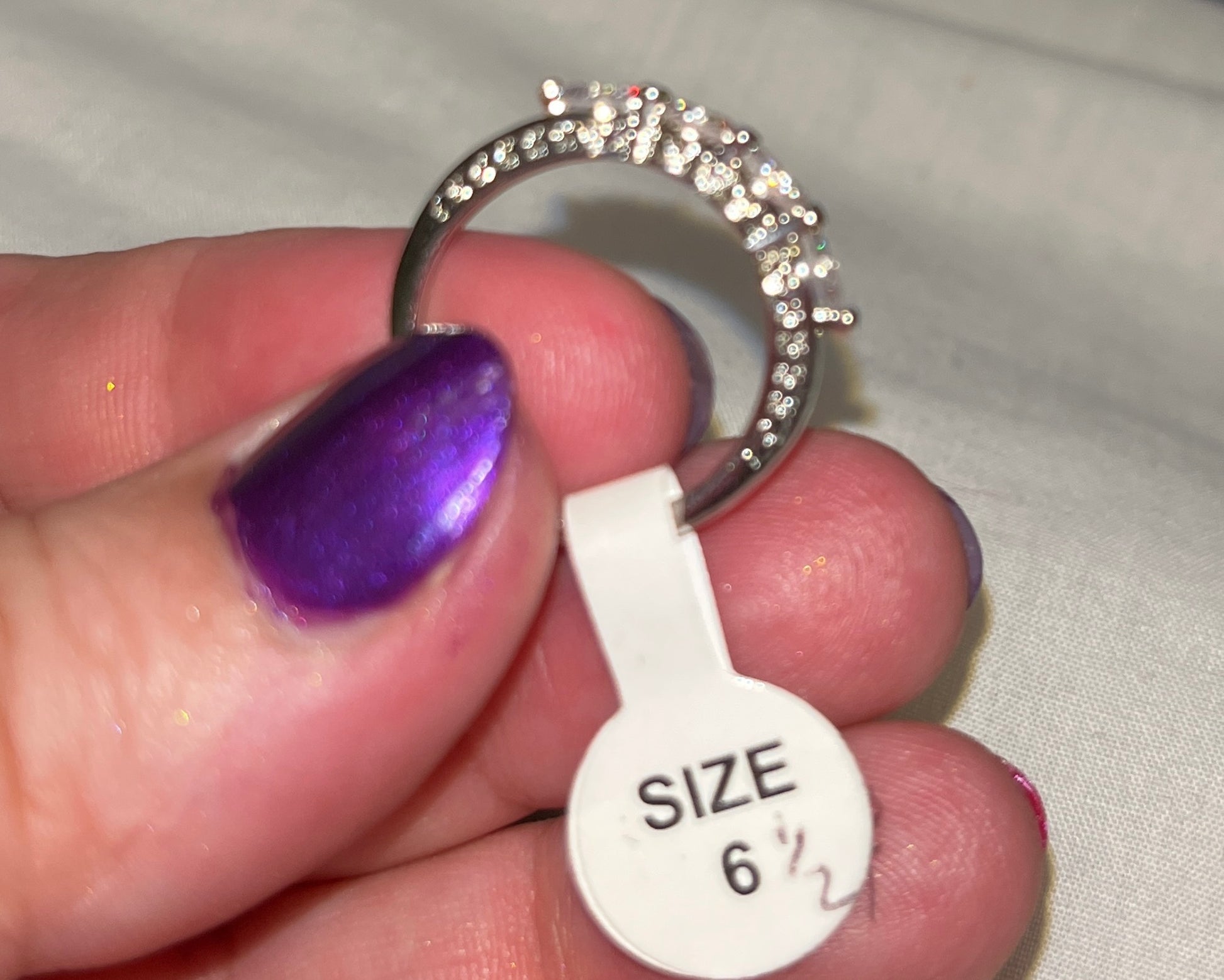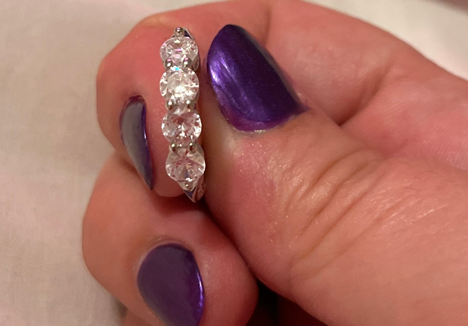 Cubic Zirconia 4-stone ring. Silver-tone zinc alloy. Size 6 1/2.