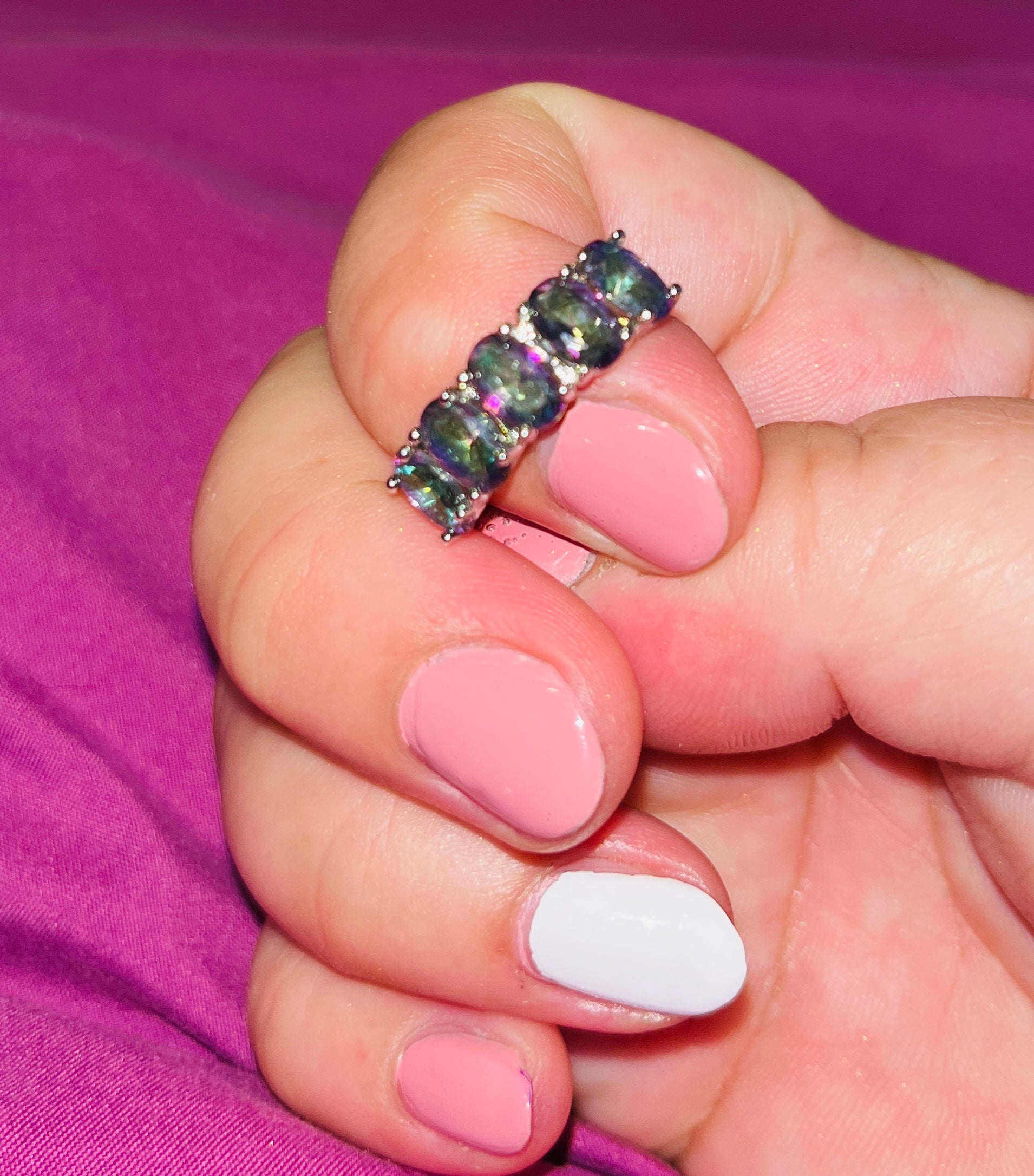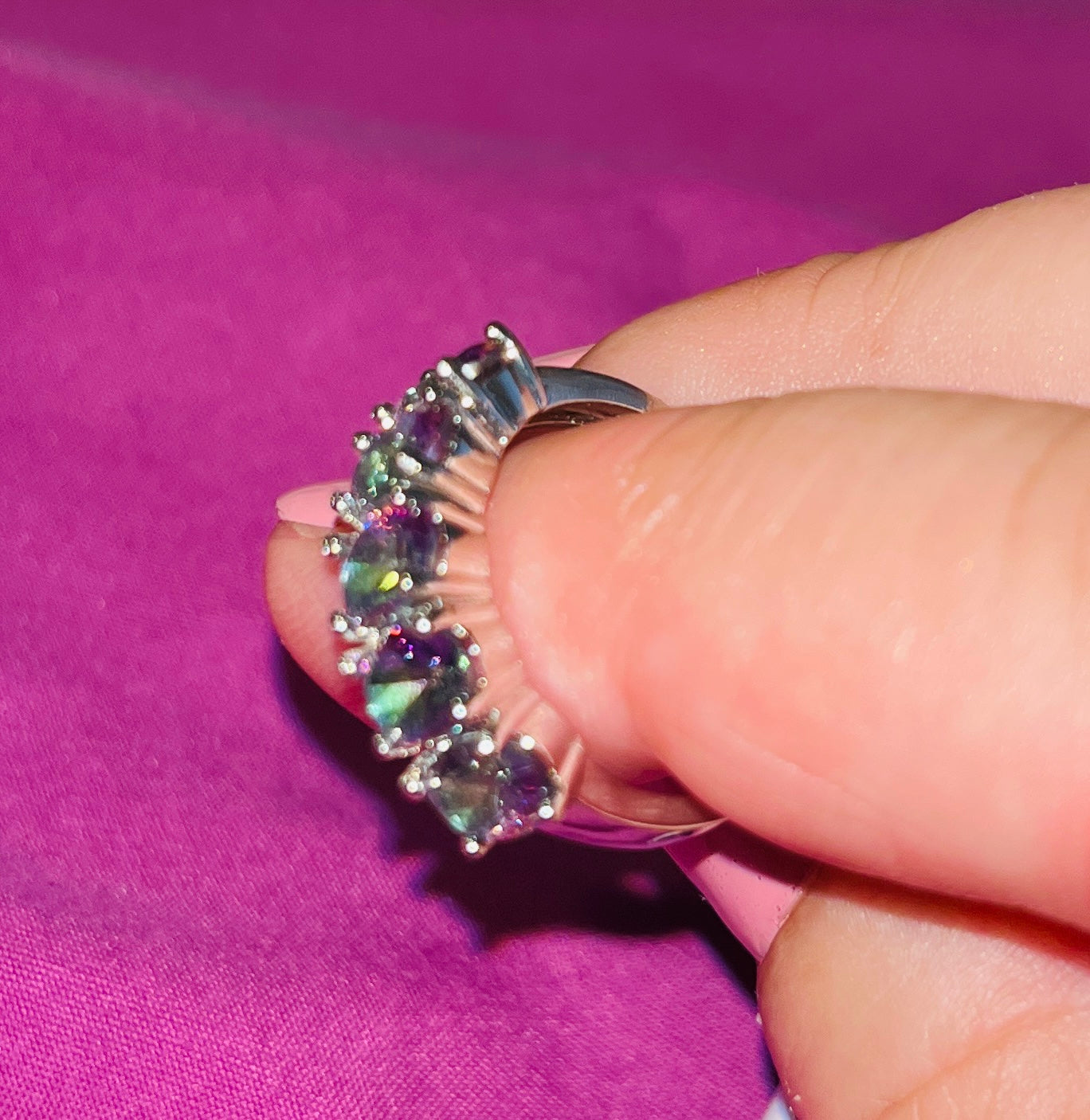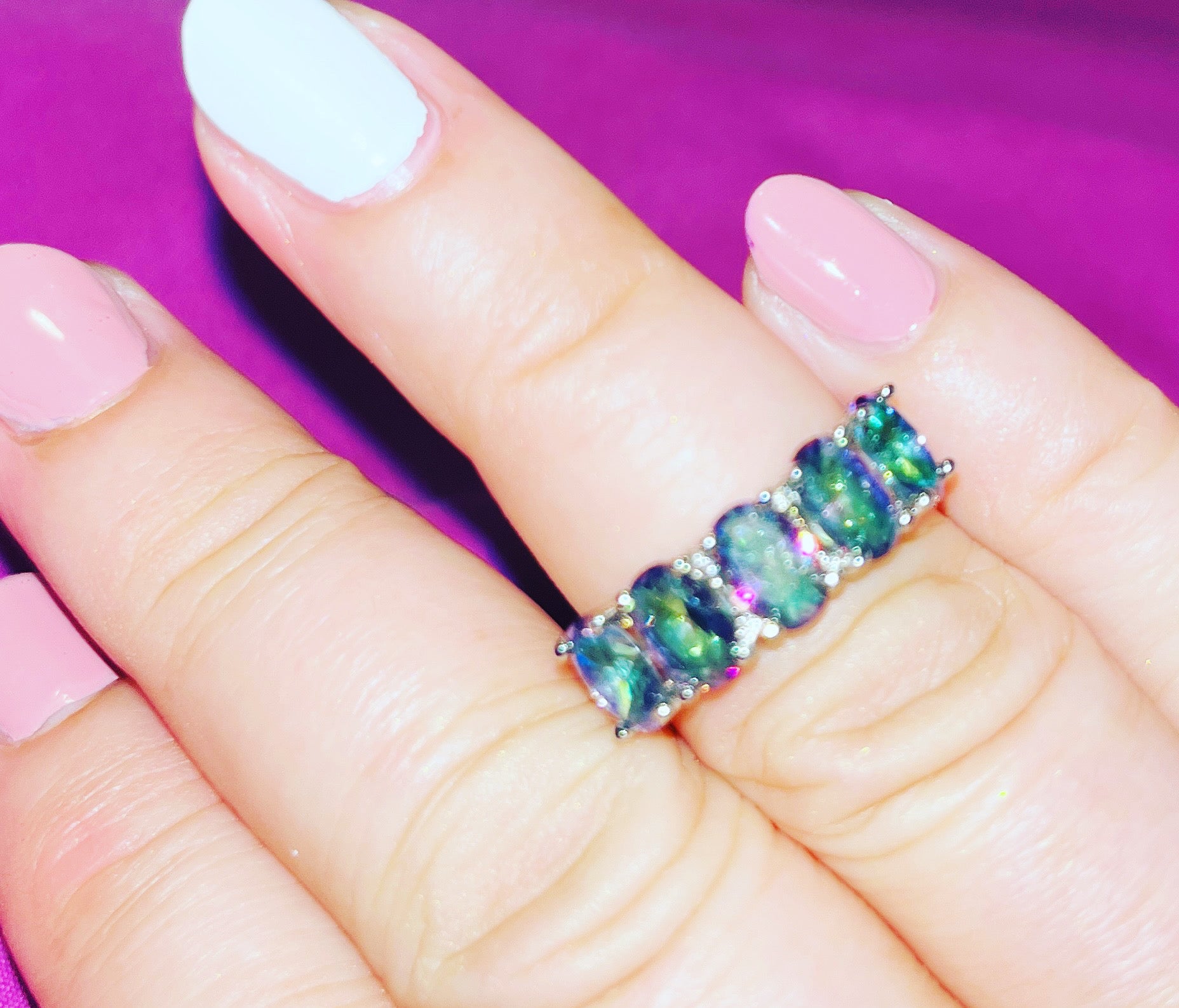 925 Silver 5-Stone Rainbow Topaz Ring