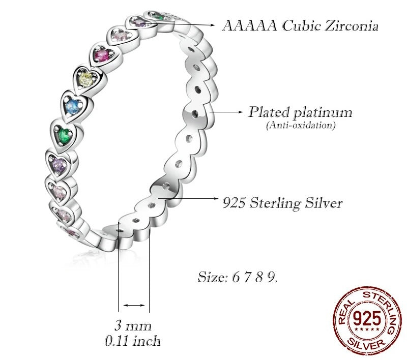 925 Silver AAAAA CZ Love Heart Eternity Ring