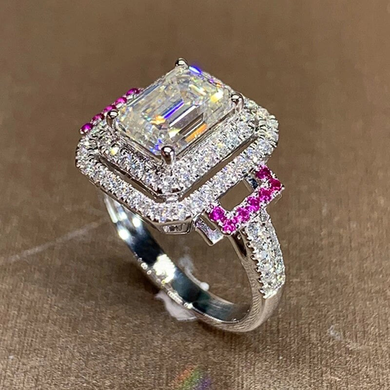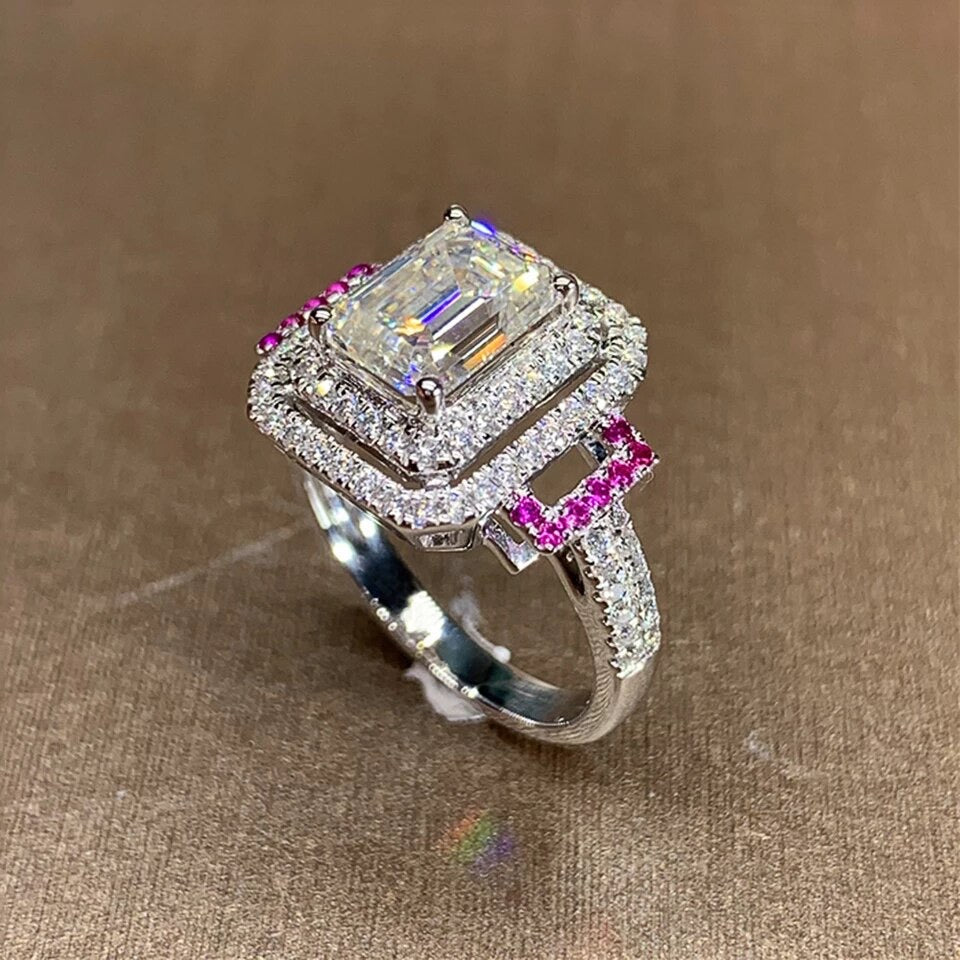925 Silver White/Rose Red AAA Cubic Zirconia Engagement Ring