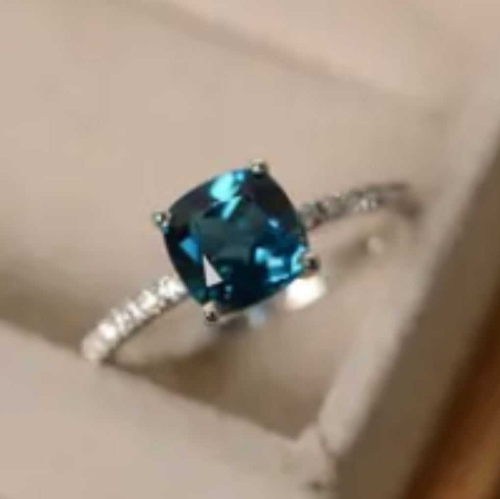 Blue Zircon Birthstone Ring