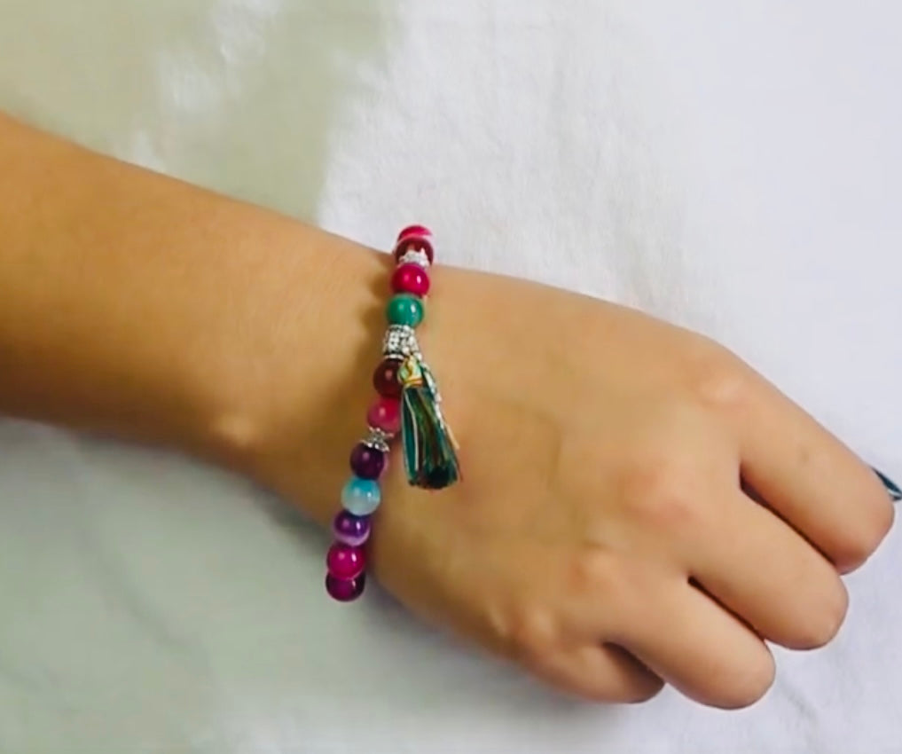 8 mm Natural Stone Beaded Bracelet. Elastic.