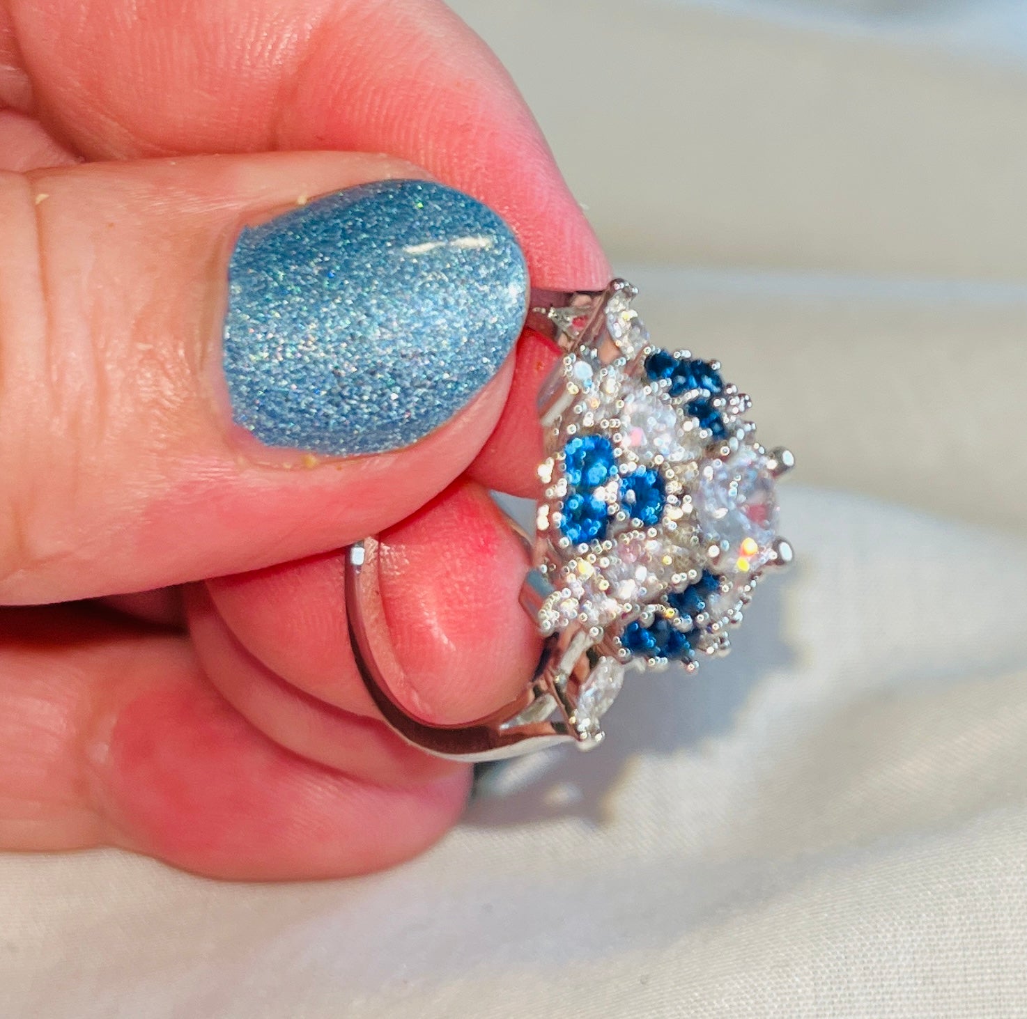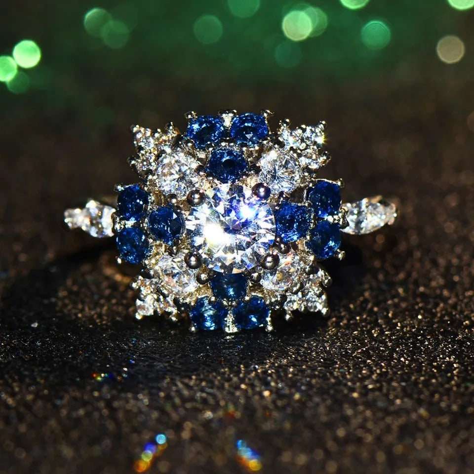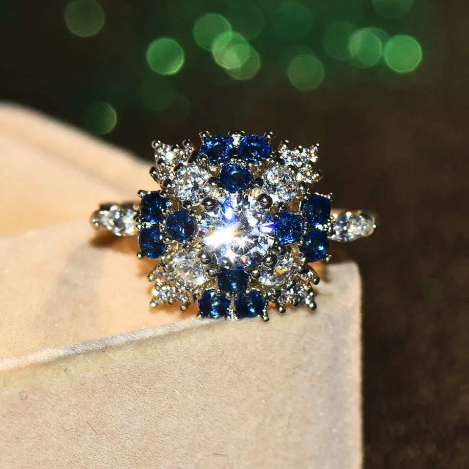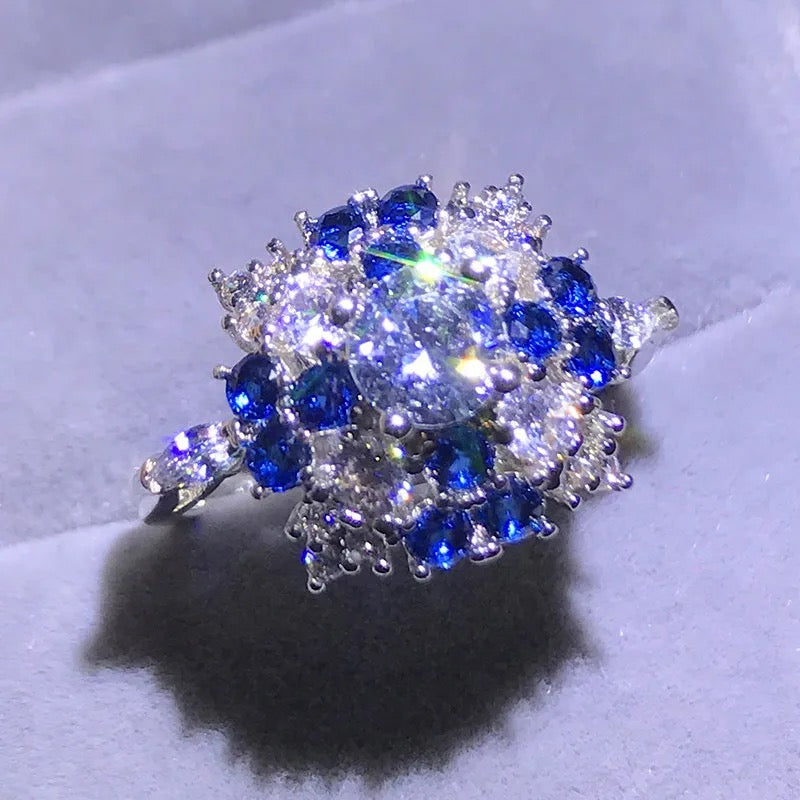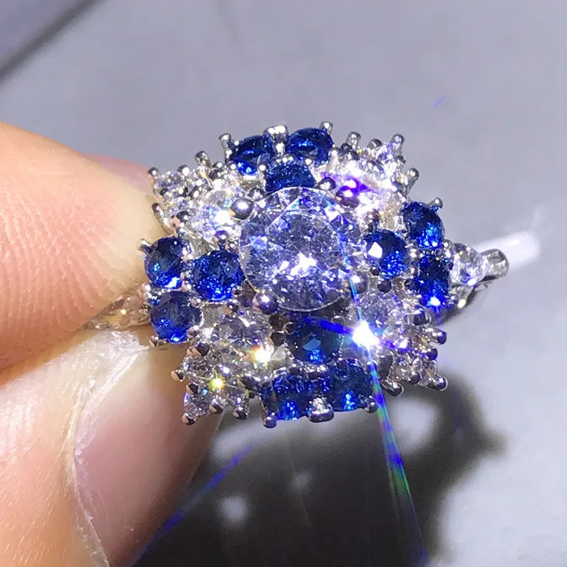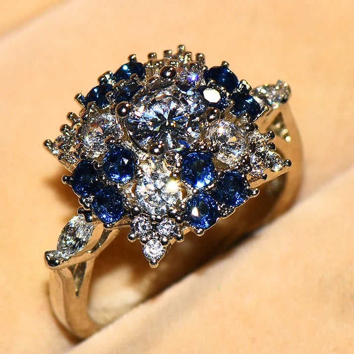 Boho Female Big Crystal Blue Stone Ring