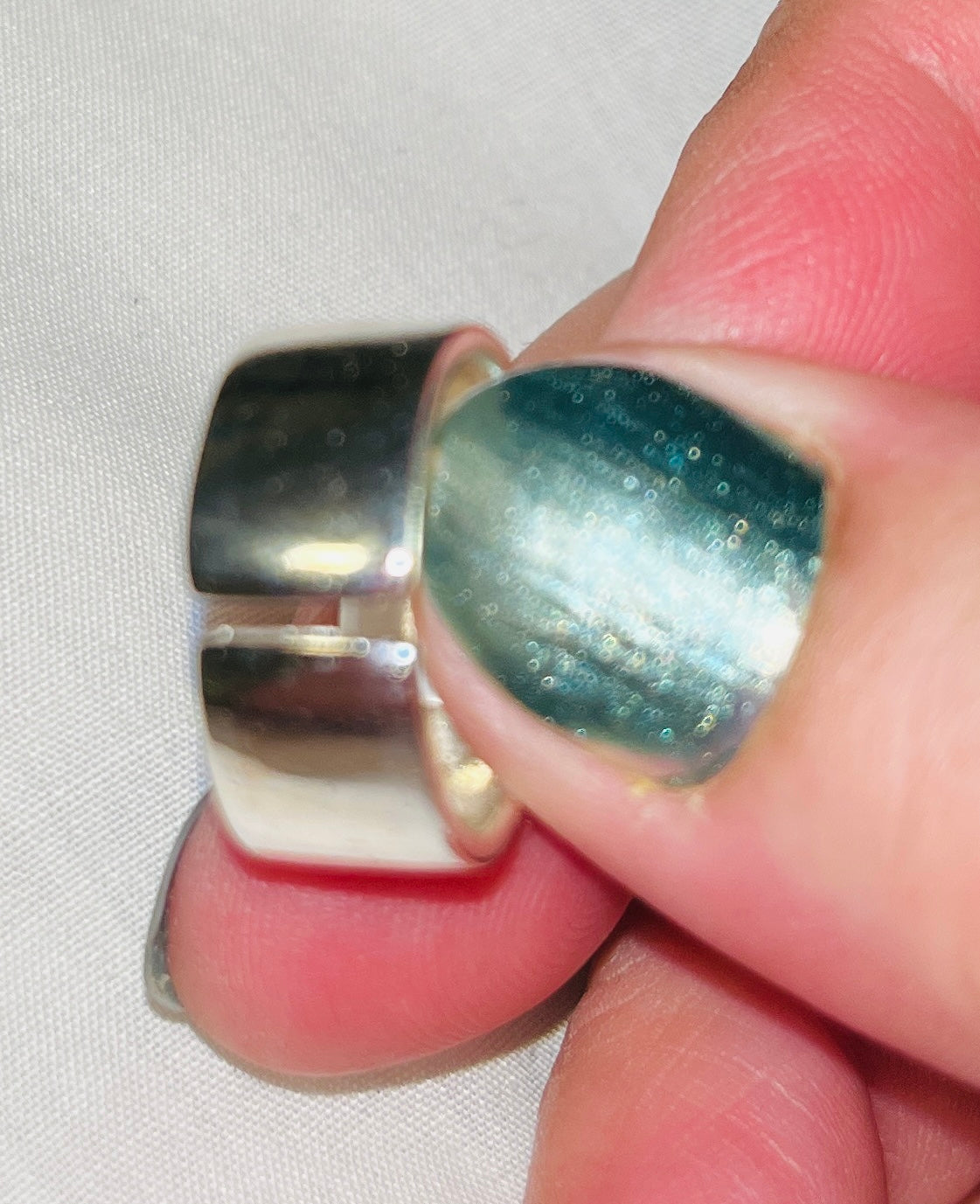 Adjustable silver-tone band. Size 6.