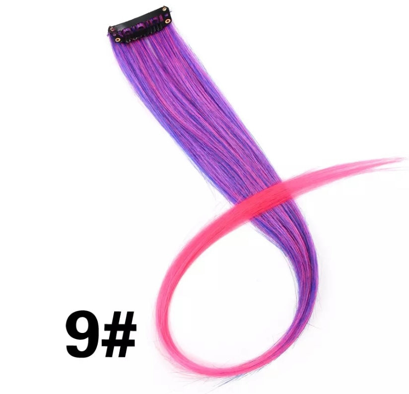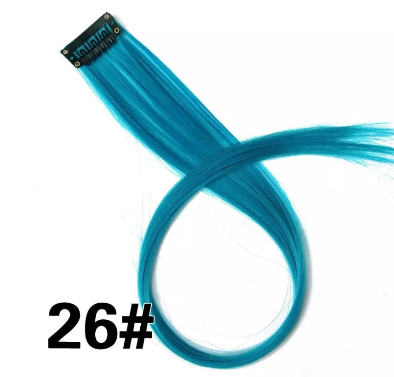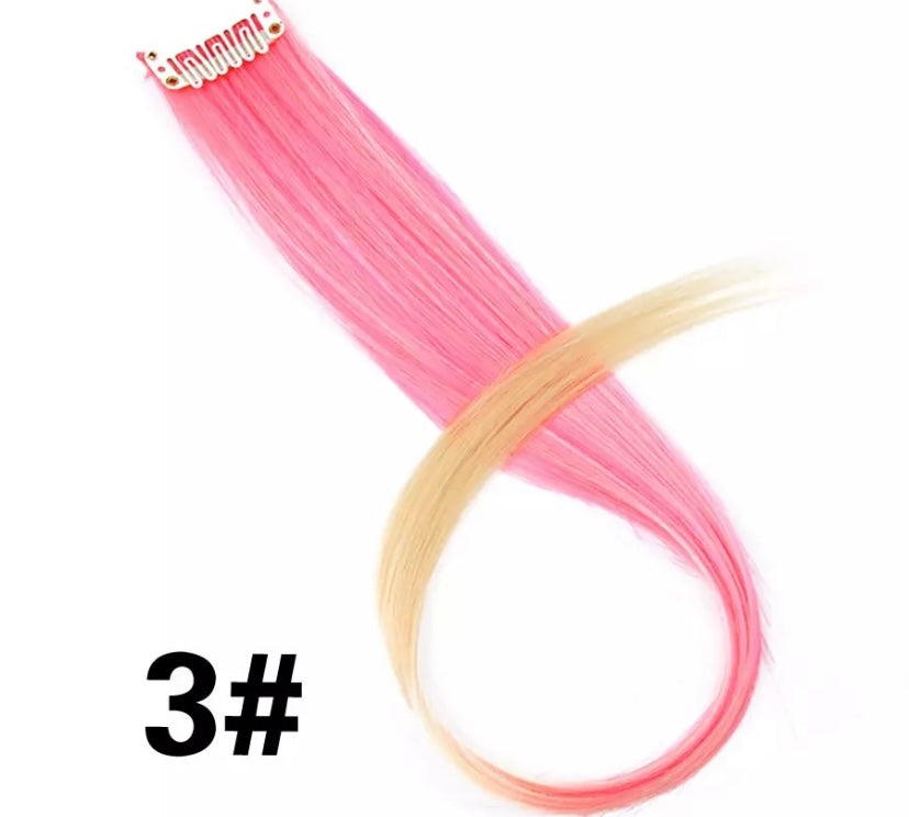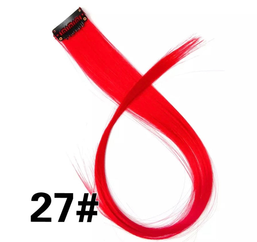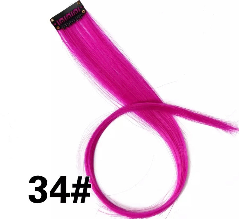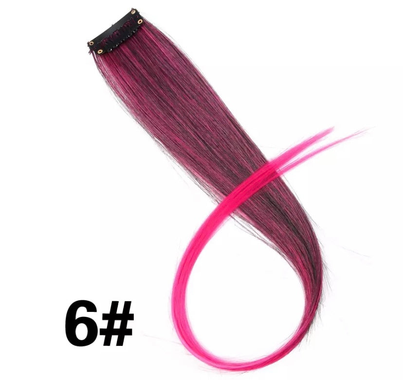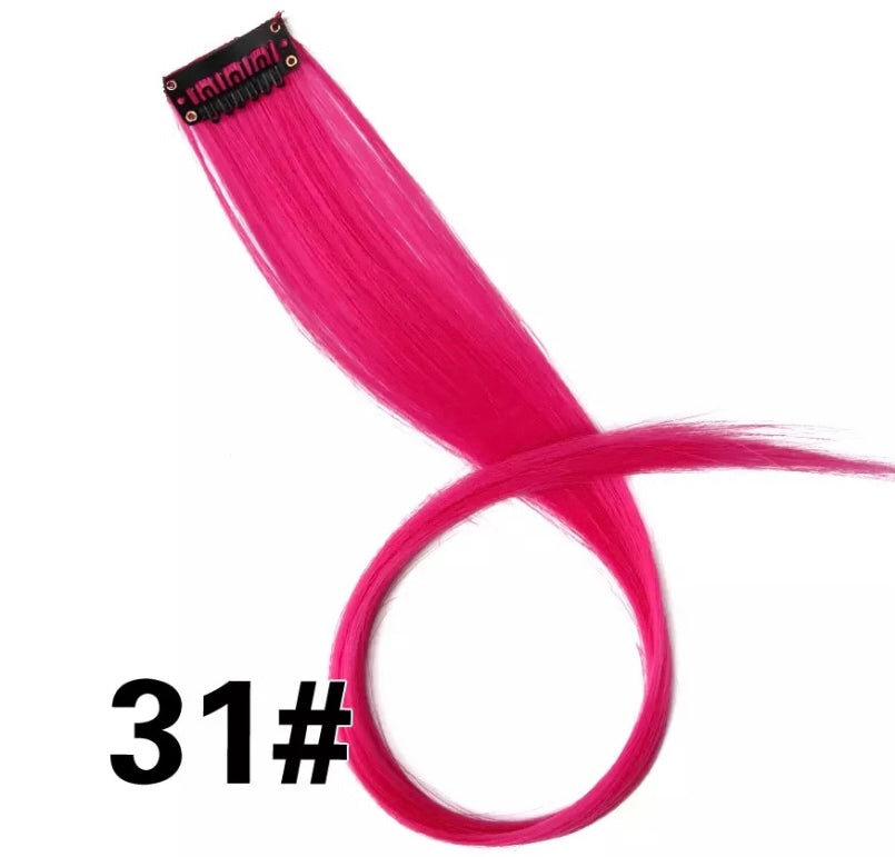 Synthetic Clip On Hair Extensions are so much fun! Texture: Straight. High Temperature Fiber. 2 inches wide; one clip. 20 inches length.