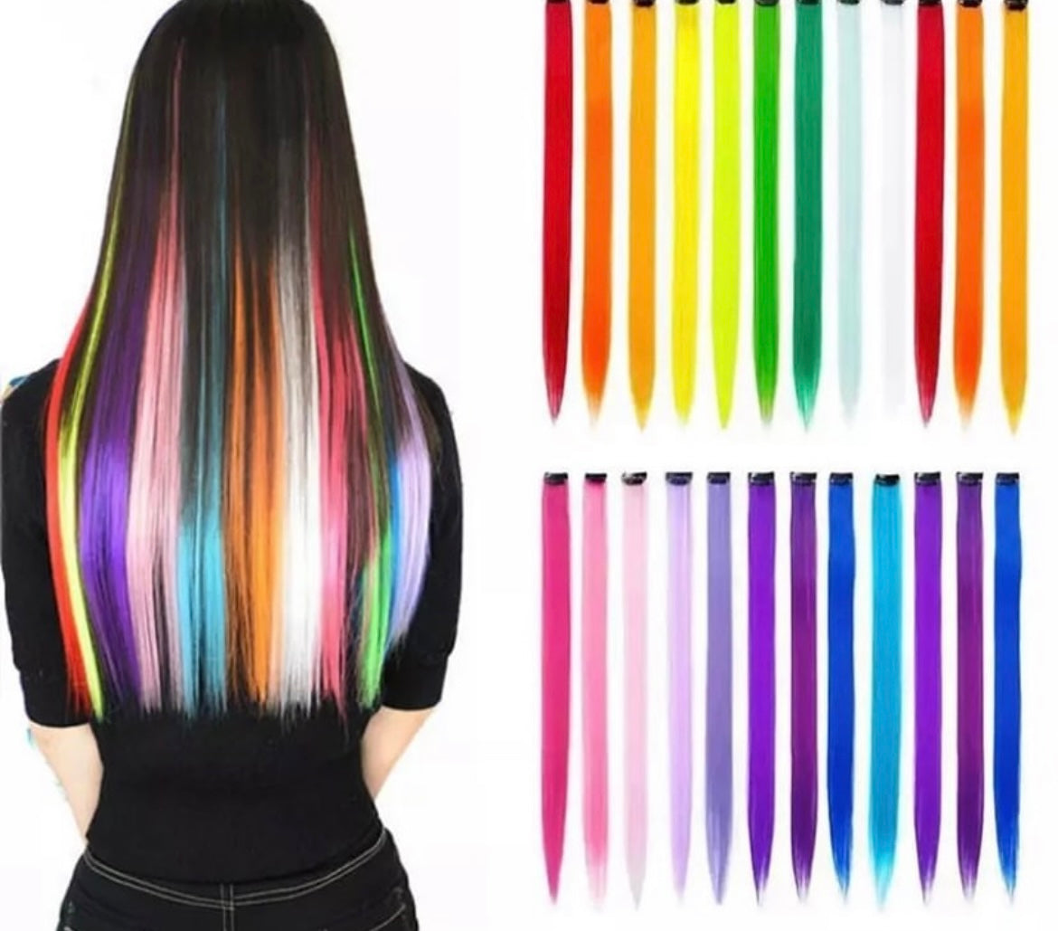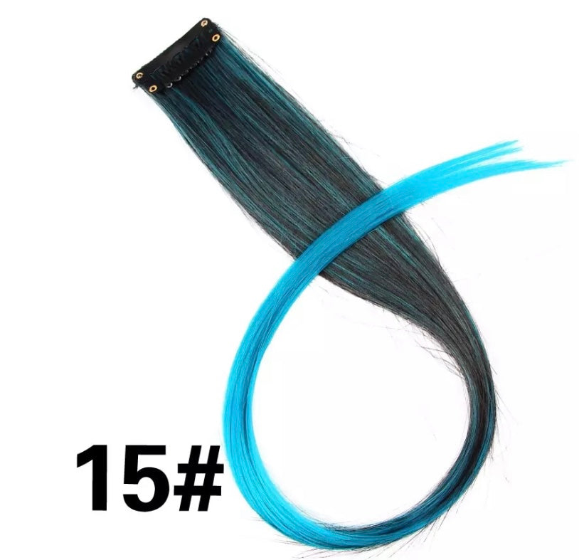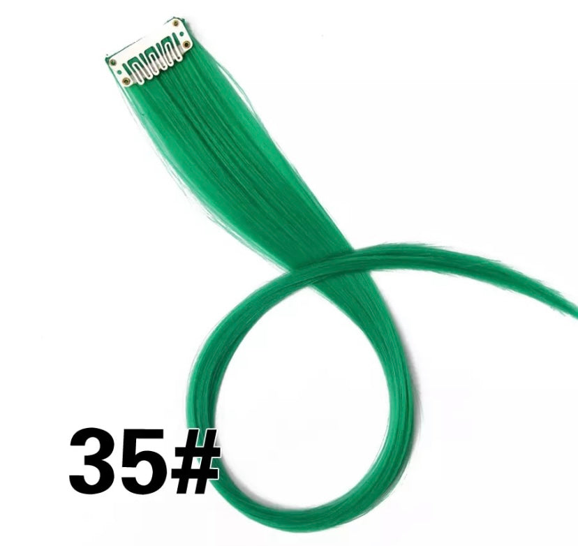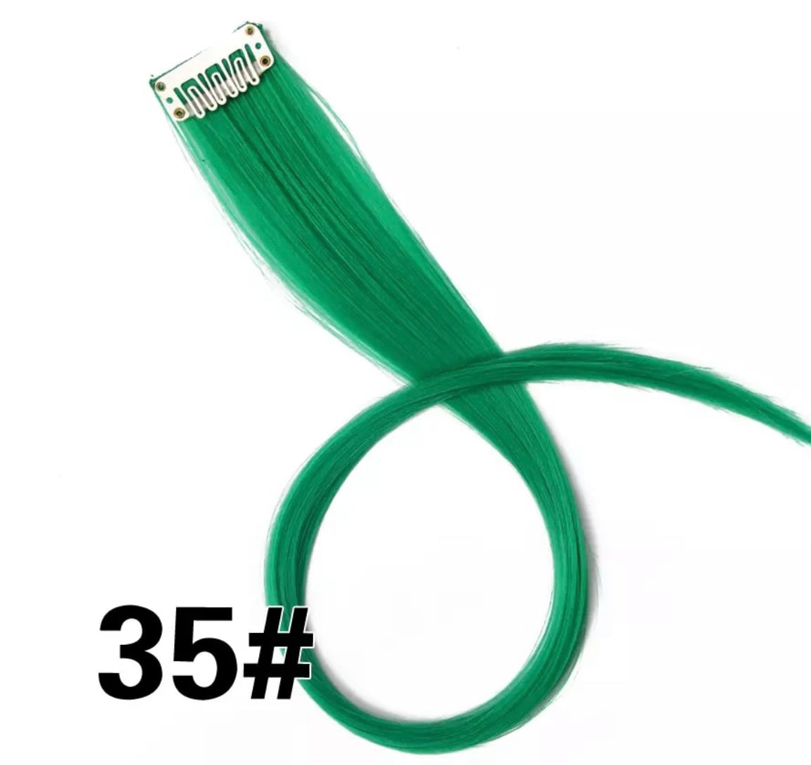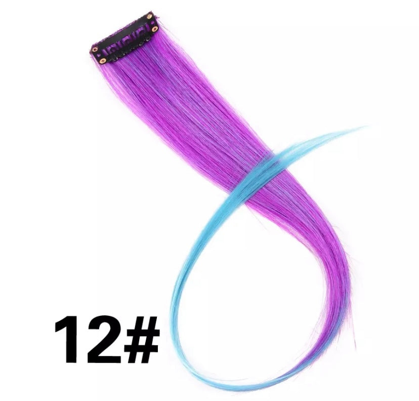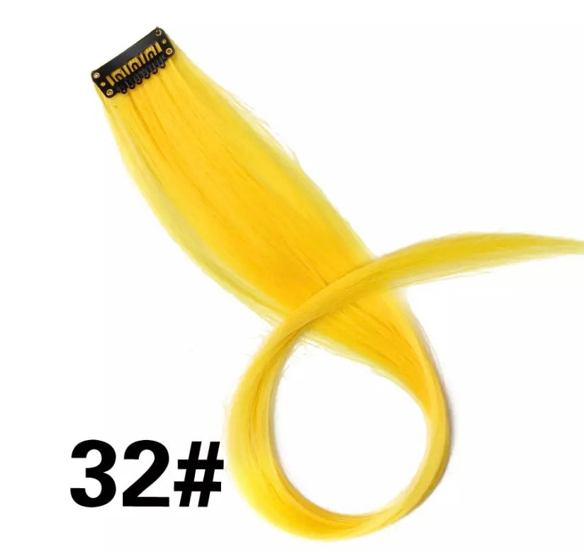 Synthetic Clip On Hair Extensions are so much fun! Texture: Straight. High Temperature Fiber. 2 inches wide; one clip. 20 inches length.