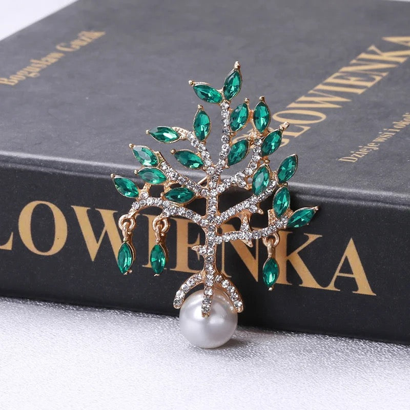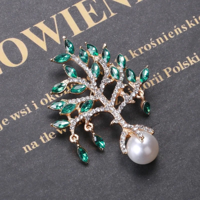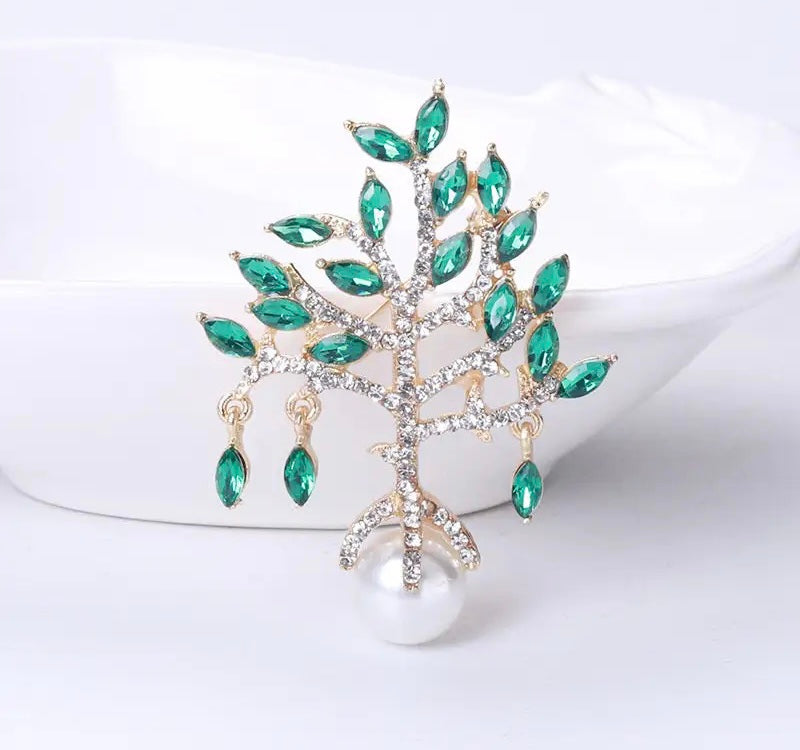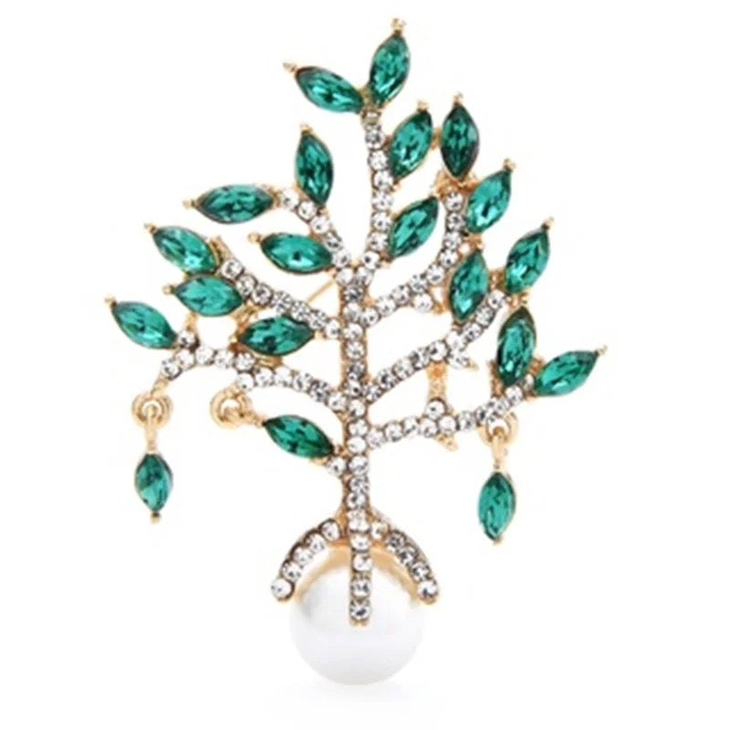 Crystal Fortune Crystal Tree with Simulated Pearl Brooch