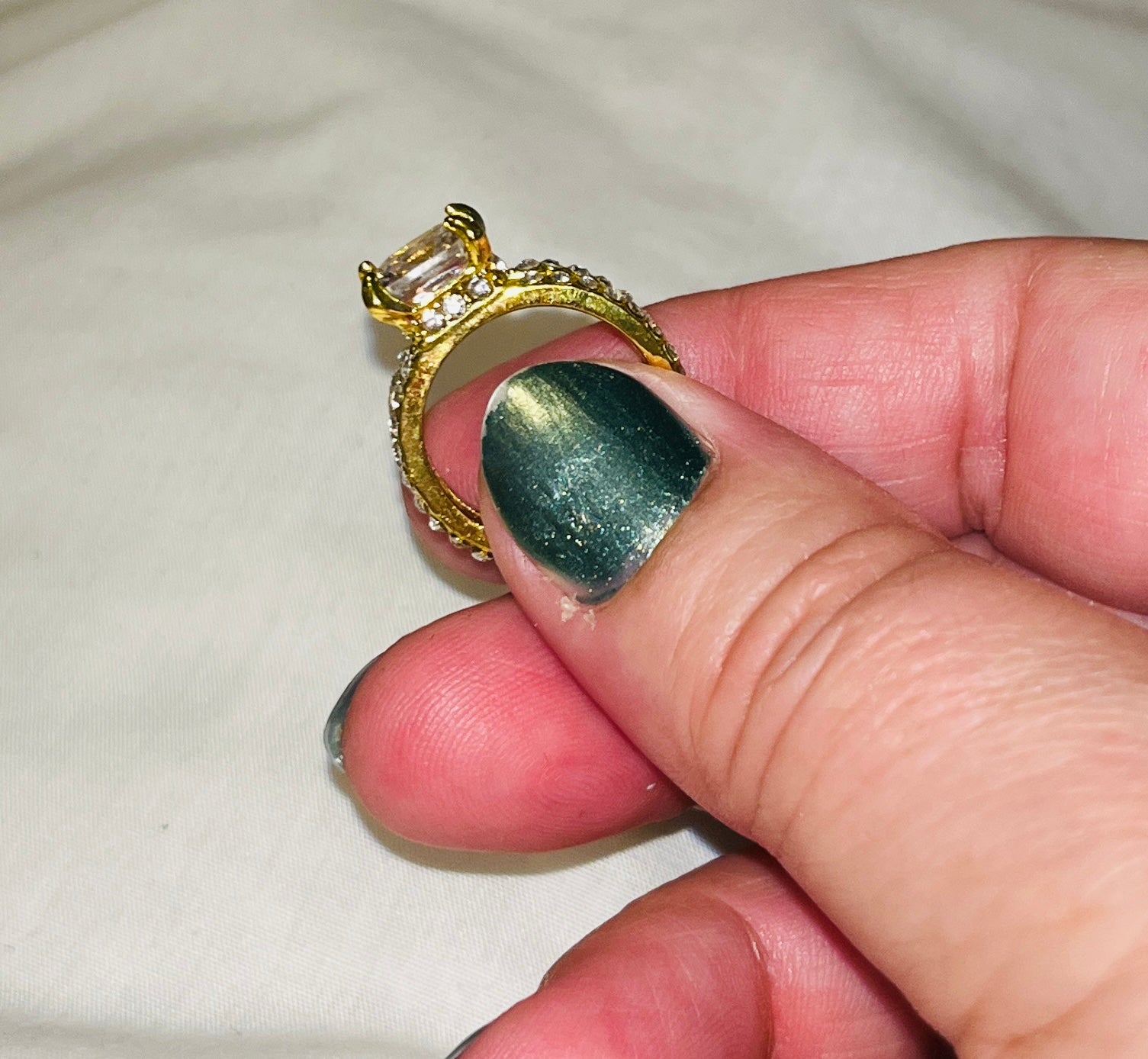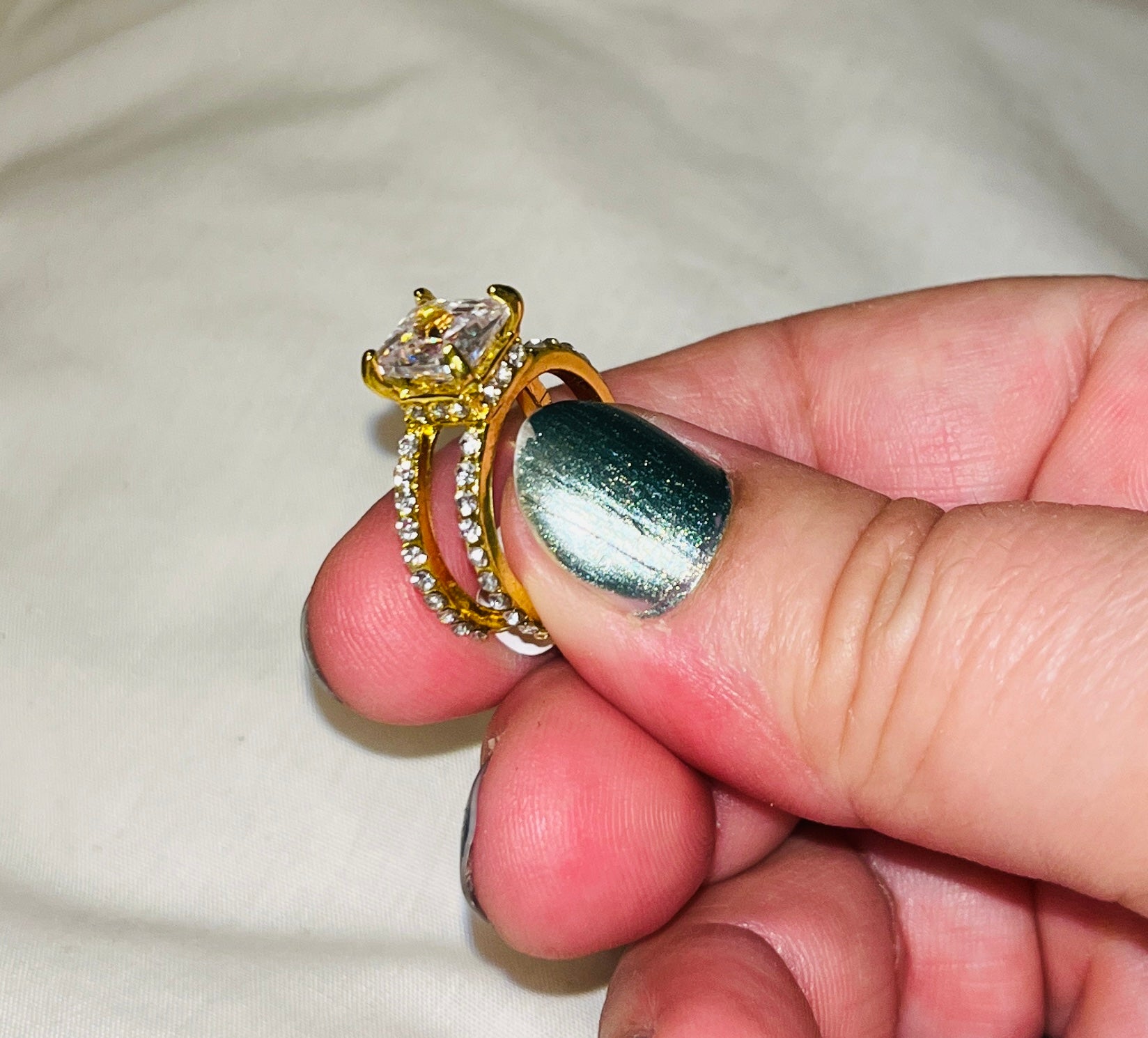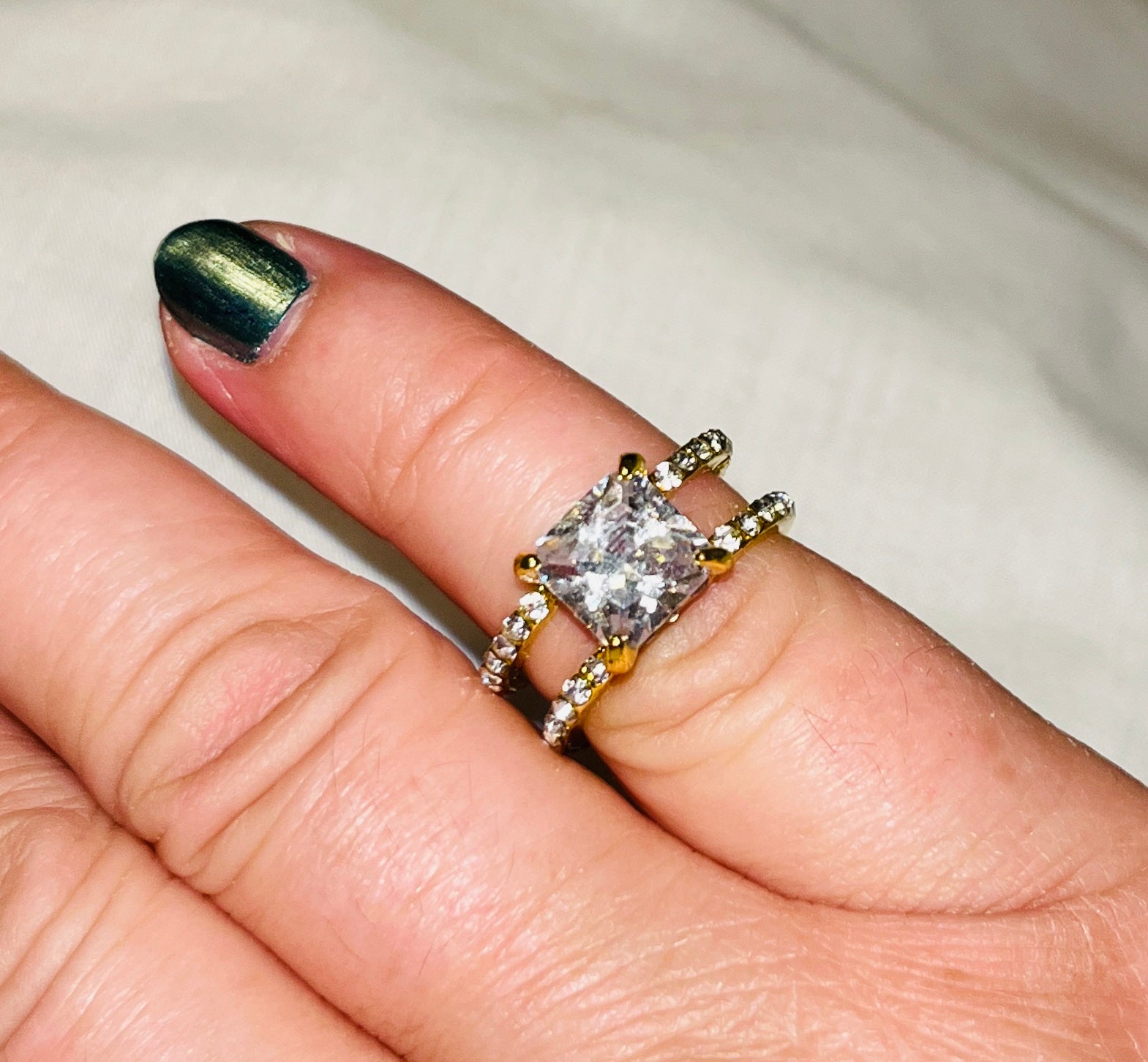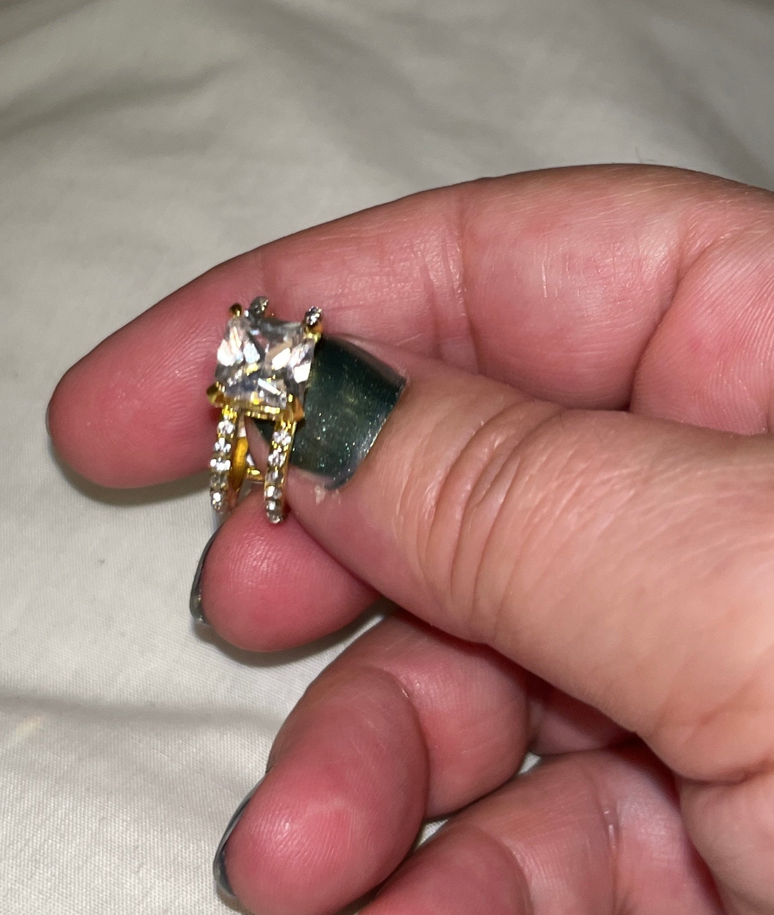 Square Cut. Gold-tone zinc alloy.