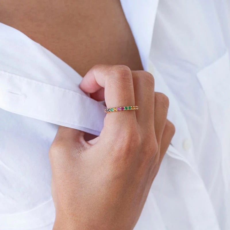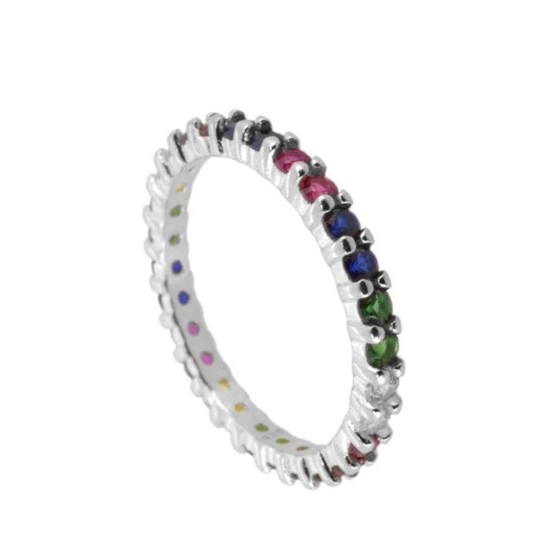 Exquisite 925 Silver Rainbow Eternity Ring