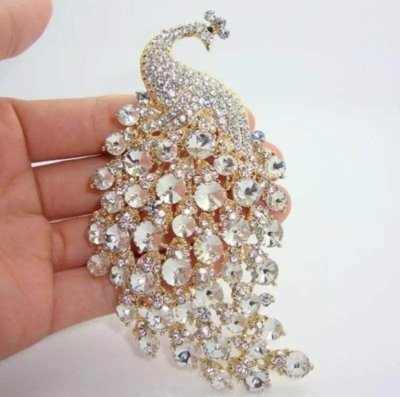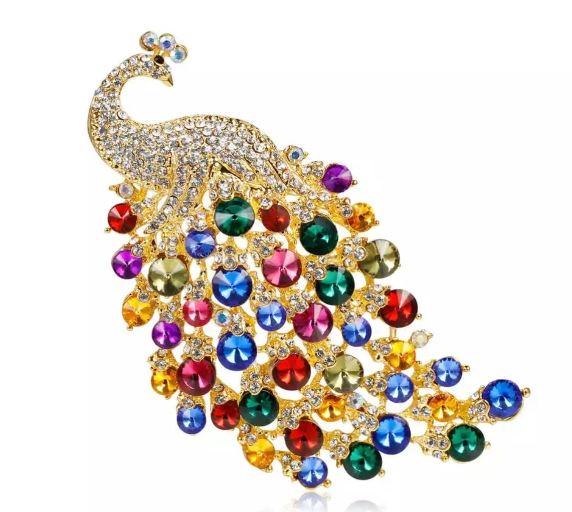 Exquisite Rhinestone Cubic Zirconia Peacock Brooch with multi-faceted rhinestones is sure to catch every eye! It's a stunner!