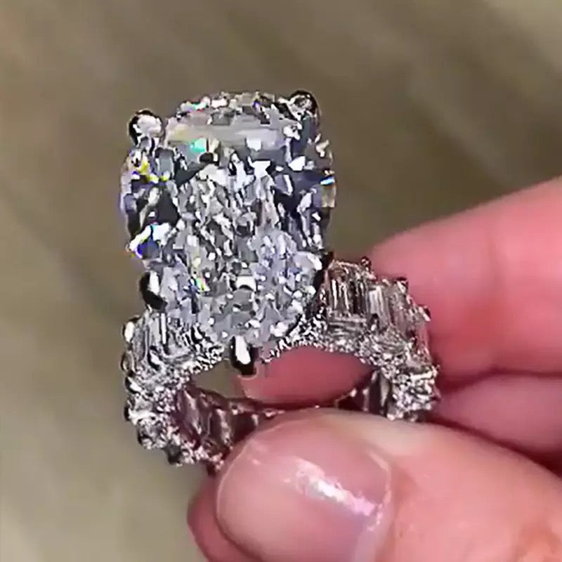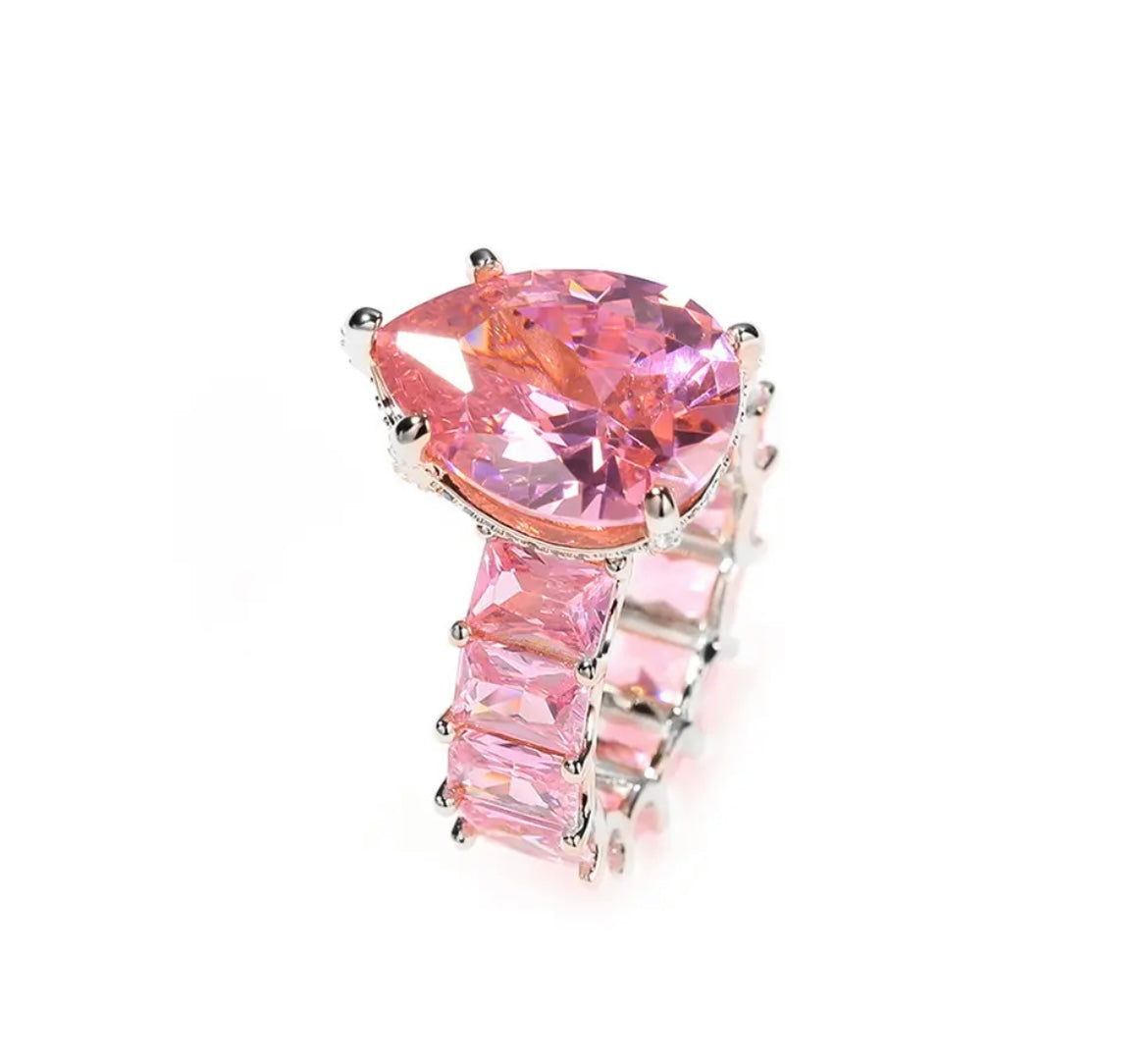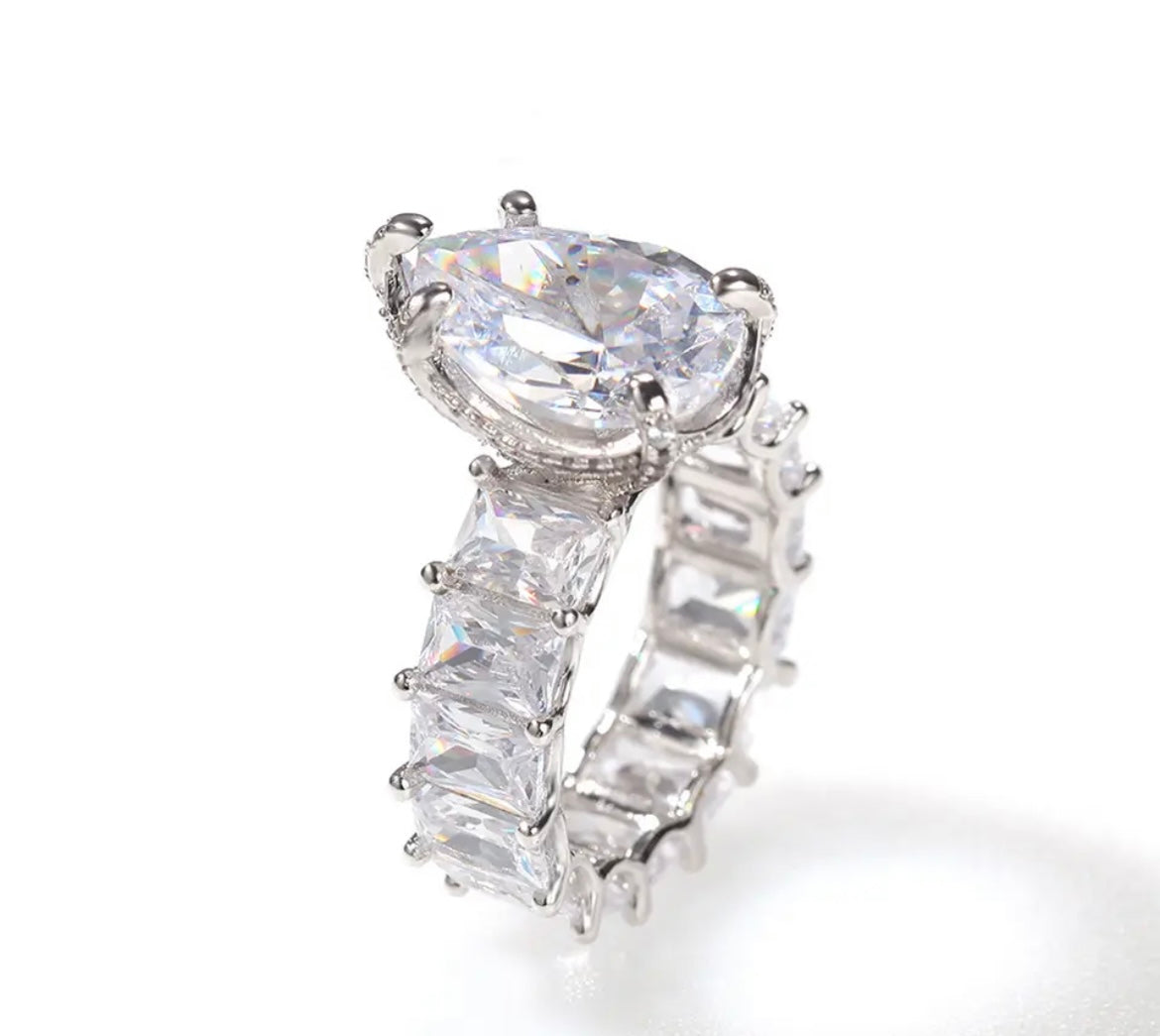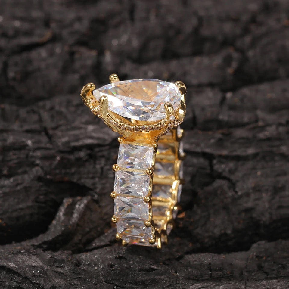 Gold-tone / 925 Silver-plated brass rings. Cubic Zirconia. Very large pear shaped center stone.