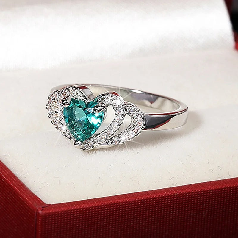 Green Zircon Heart Ring