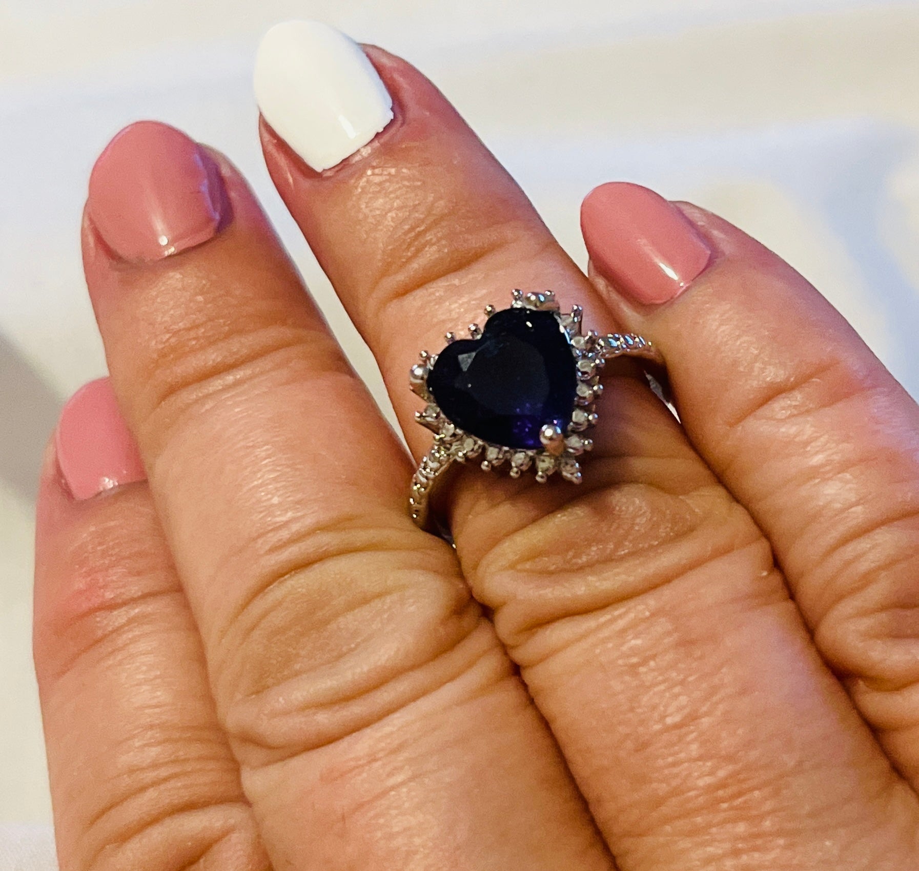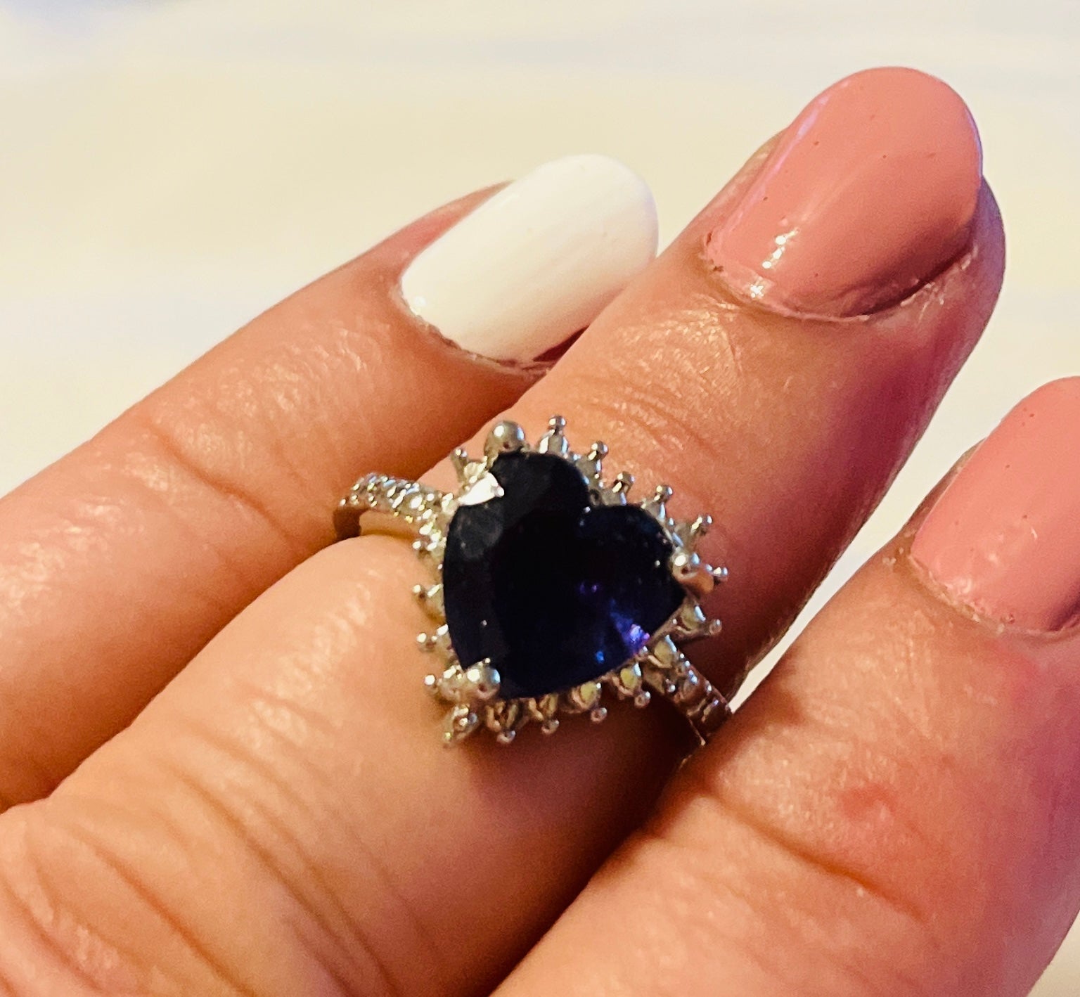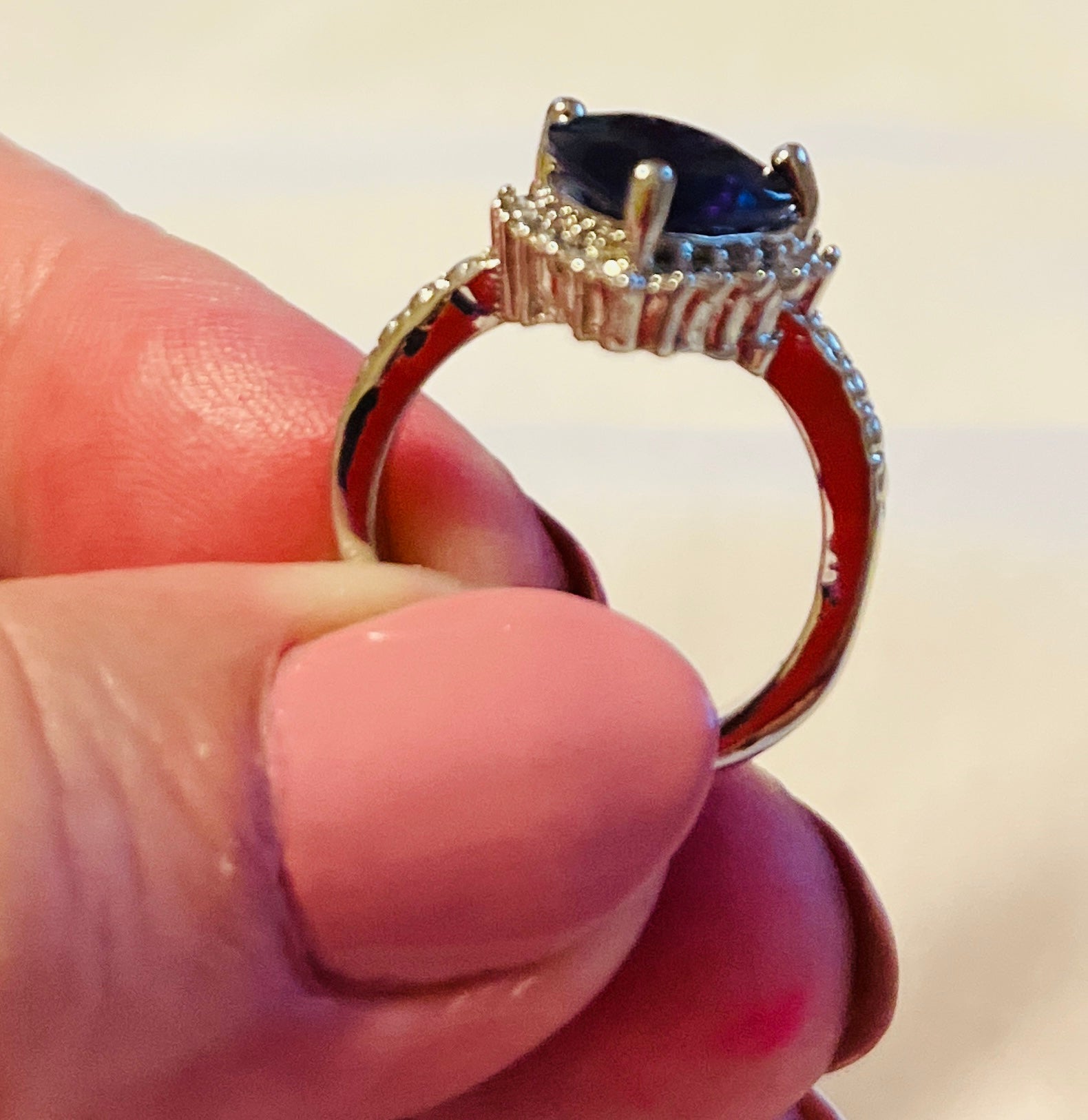 Size 6. Silver-tone zinc alloy. Violet-Blue.