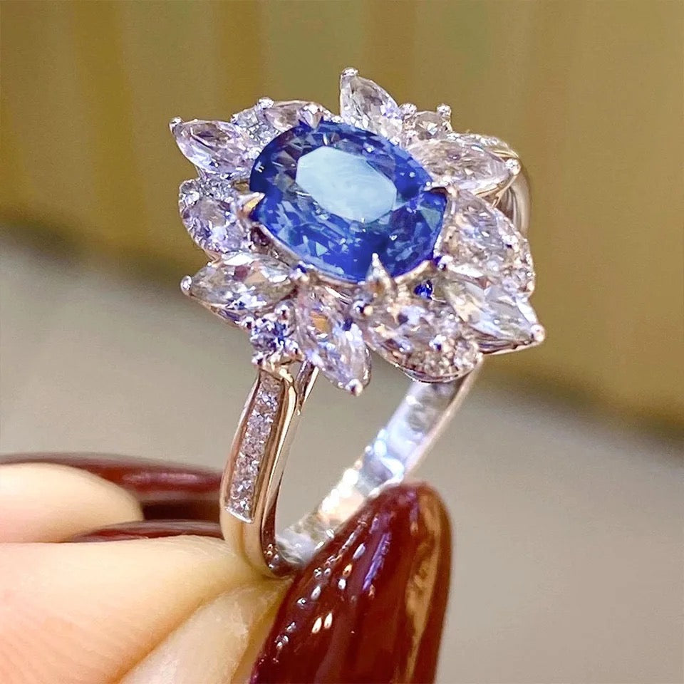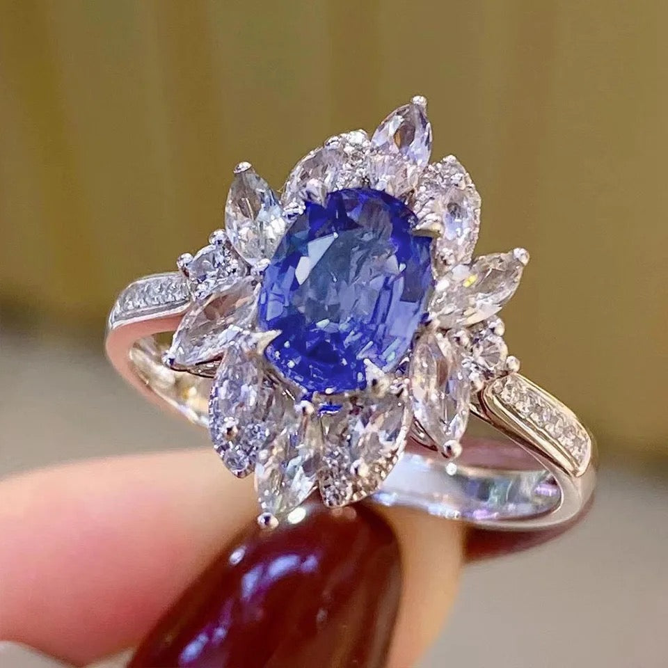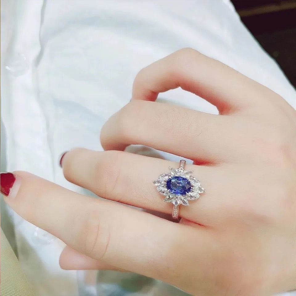 Luxury Violet Oval Blue Cubic Zirconia Ring