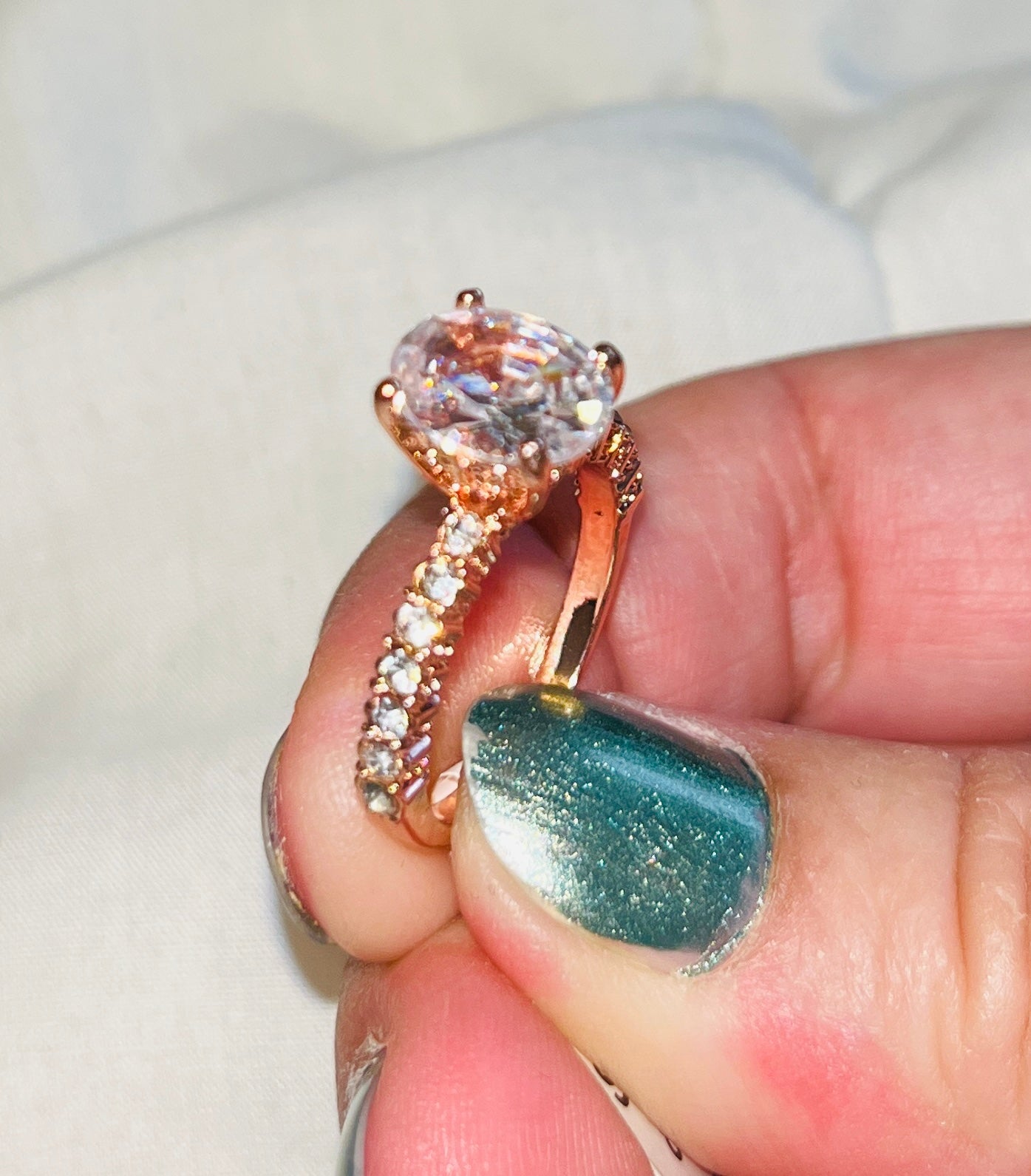 Rose Gold, Silver & Gold-tone oval zircon rings with lots of bling!