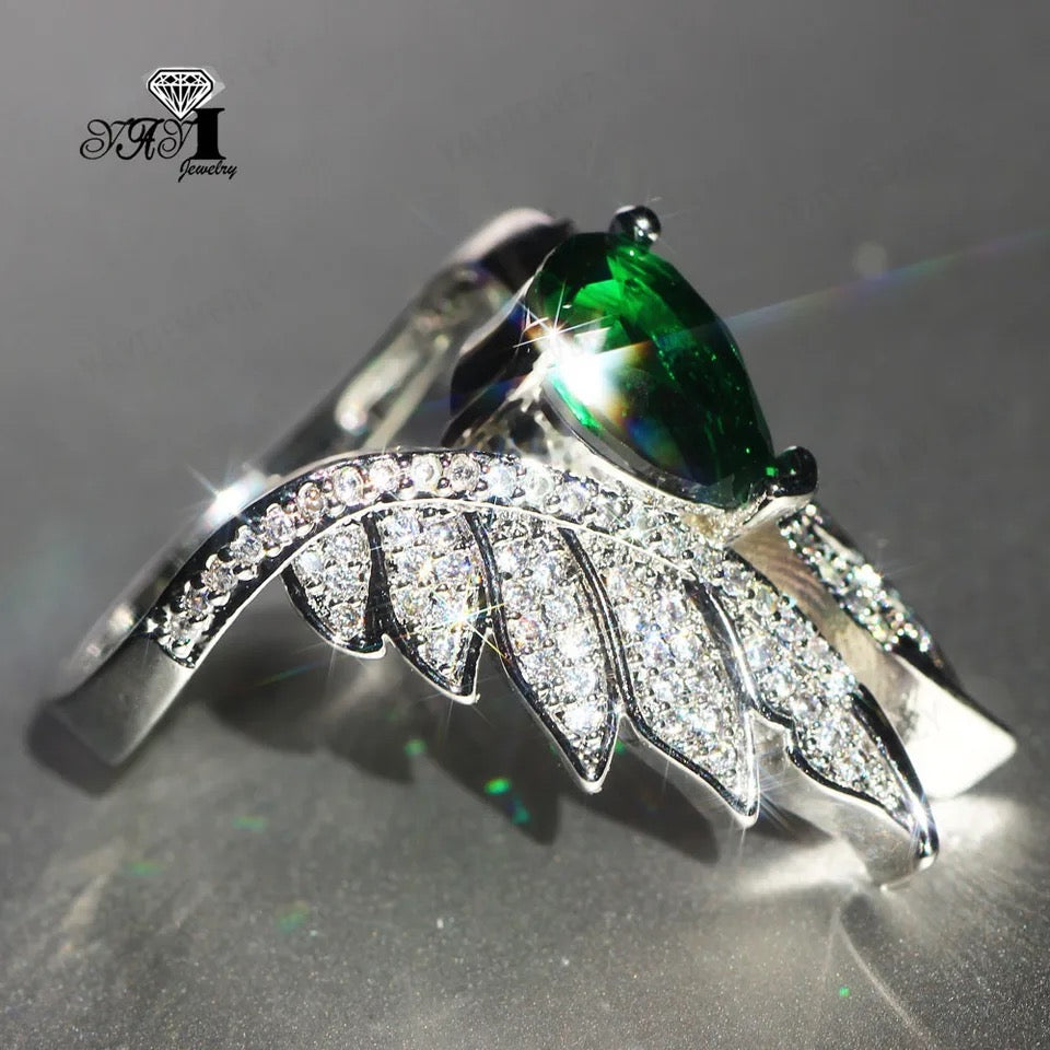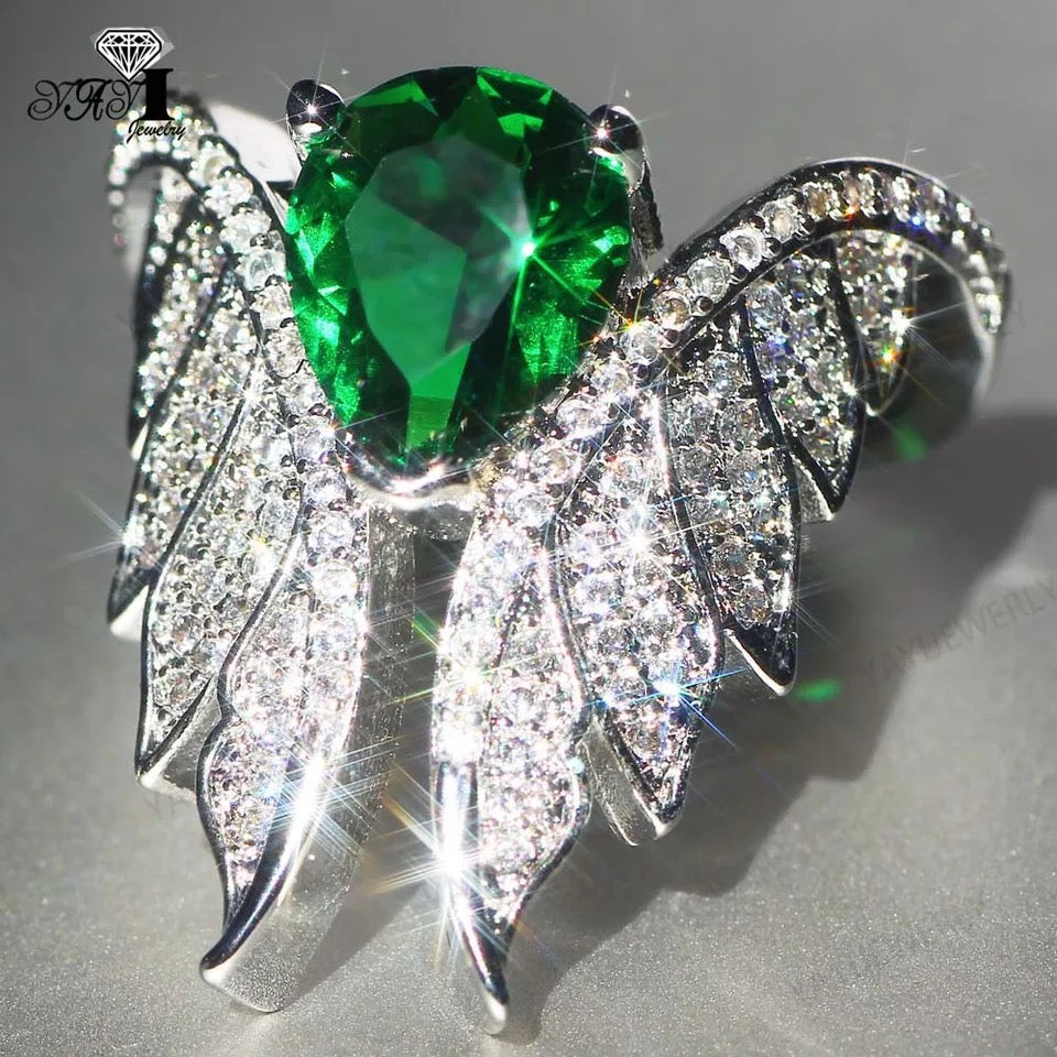 Size 9 1/2. Simulated Emerald with clear cubic zirconias. Silver-tone zinc alloy.