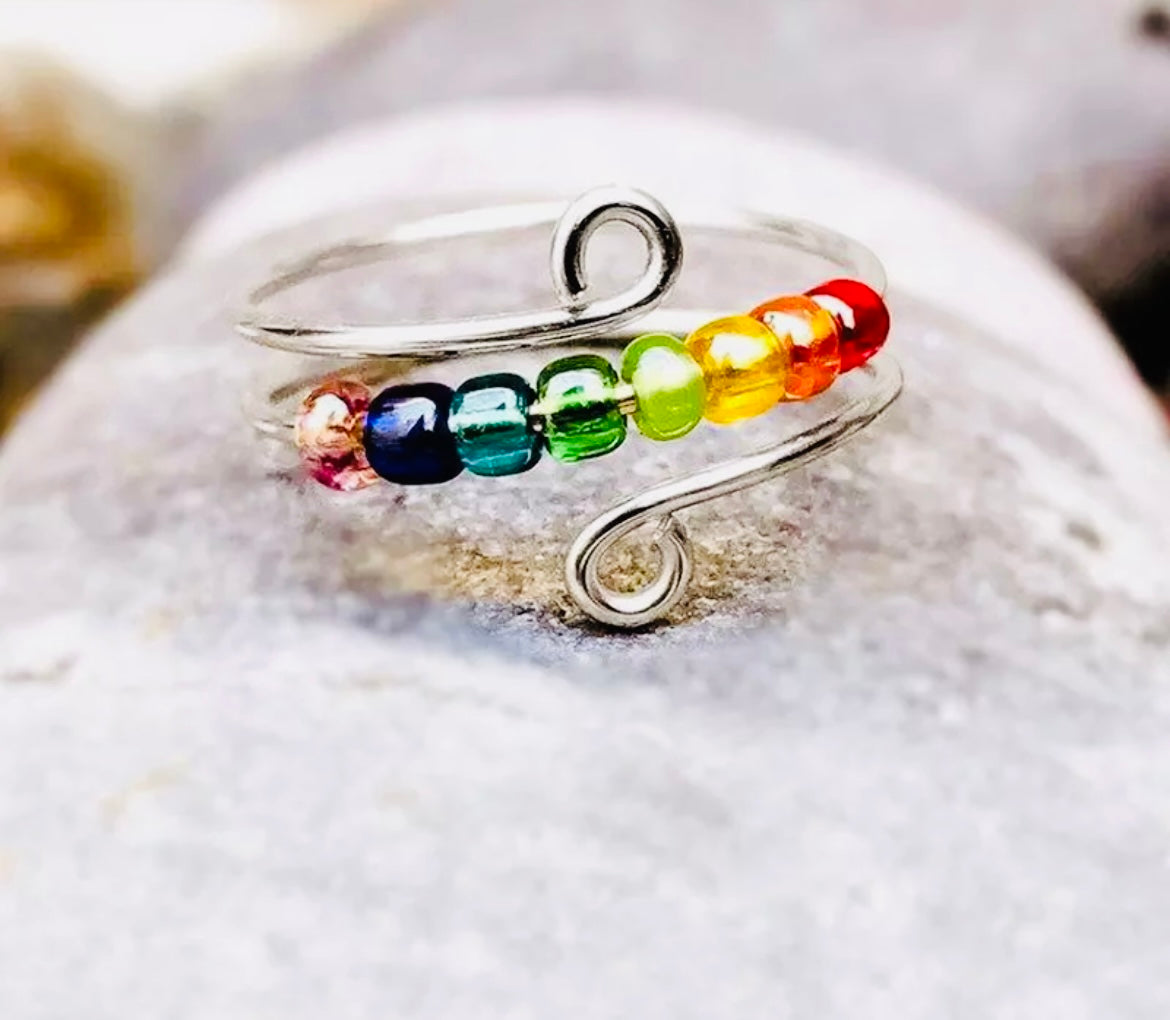 Silver-tone zinc alloy. You can move the beads along the wire.
