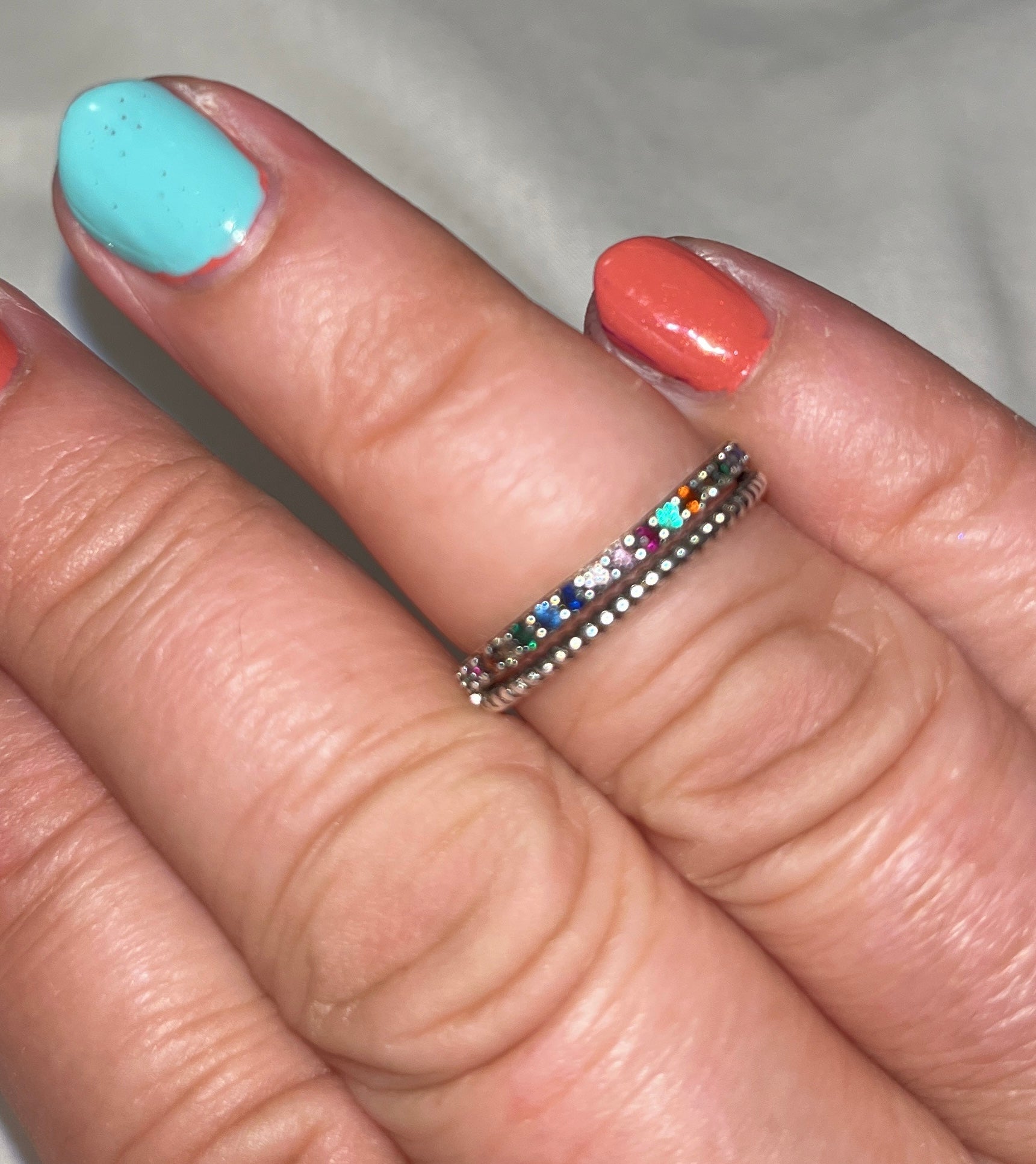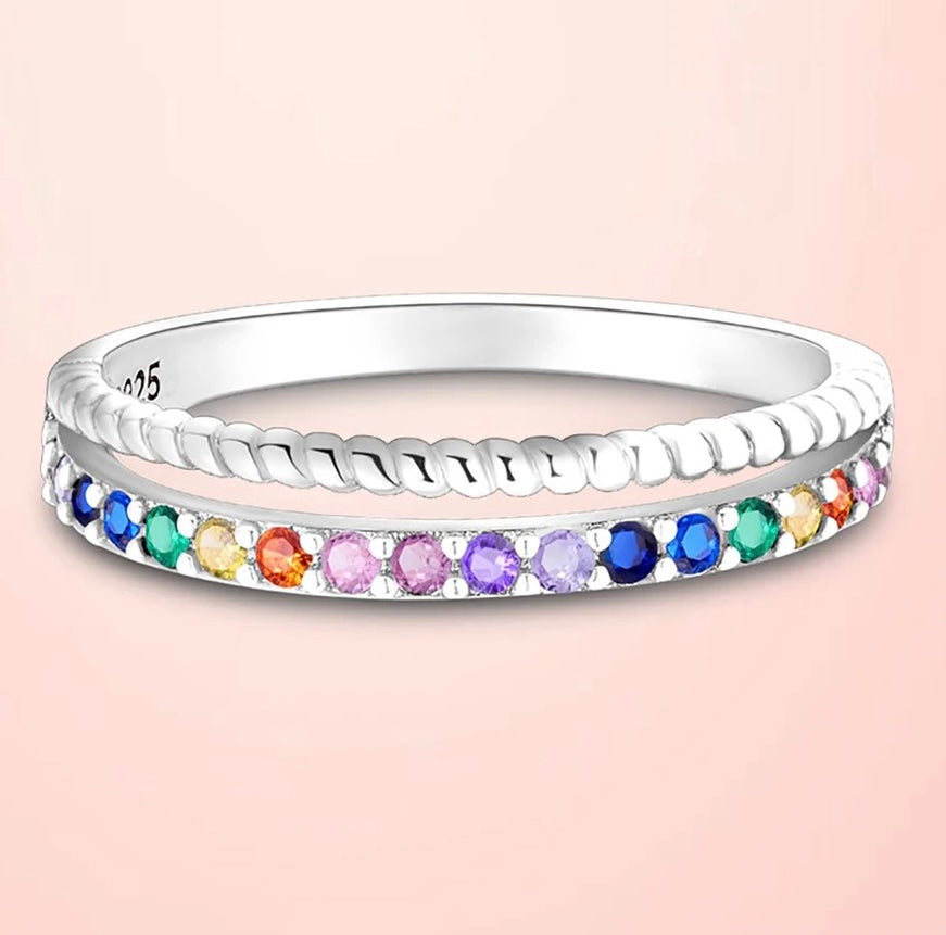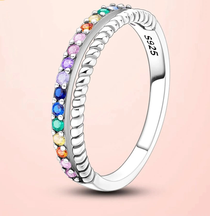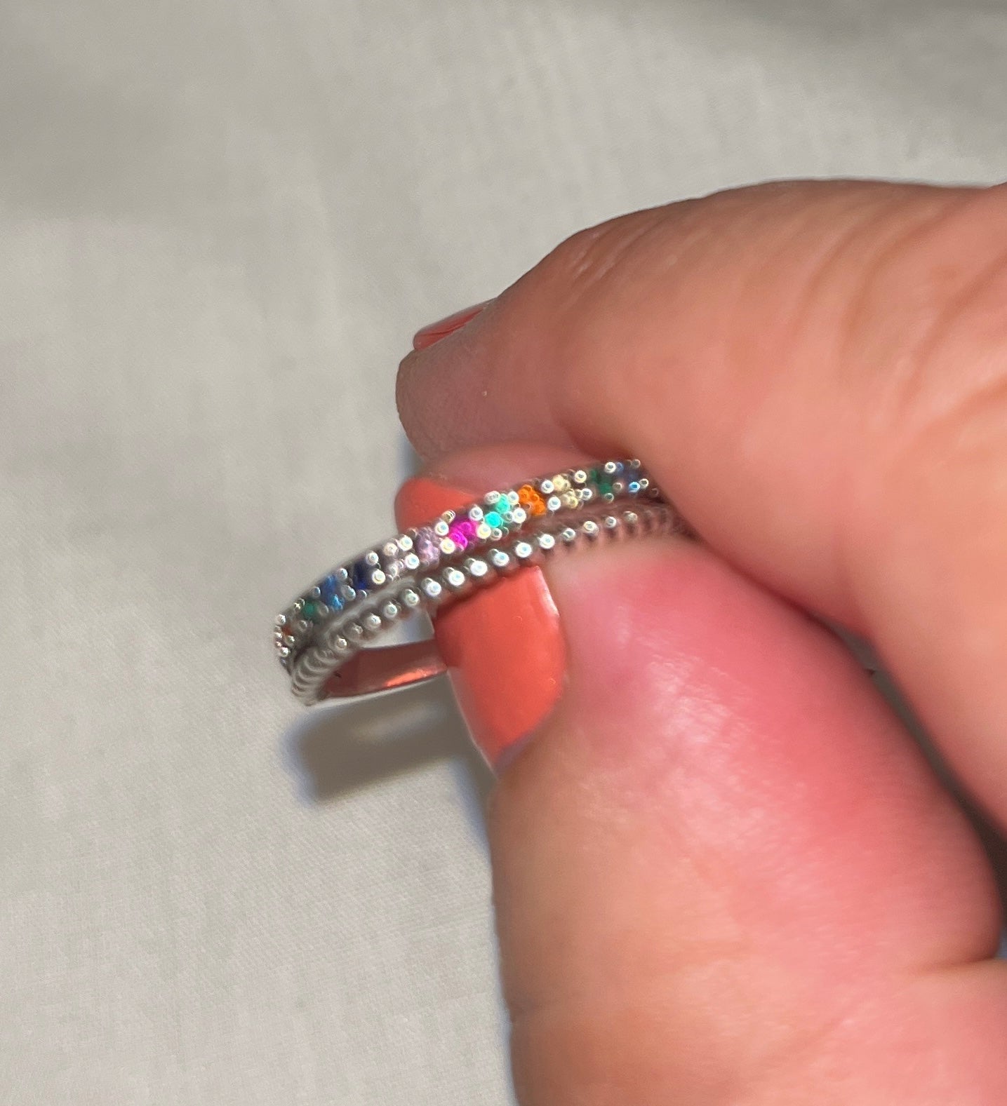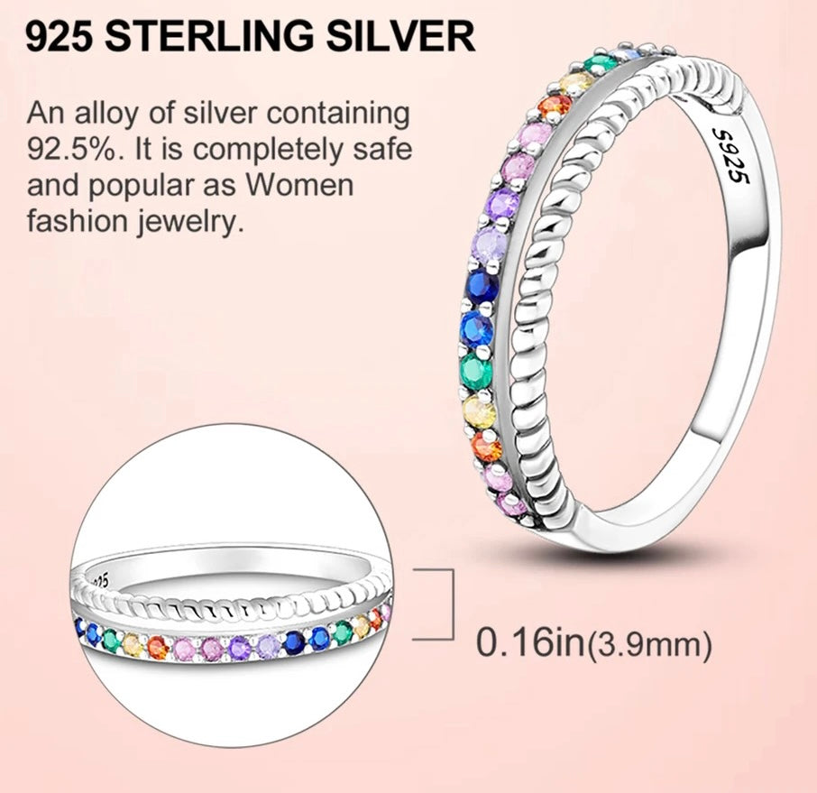 Size 7. 925 Sterling Silver. Cubic zirconia. Photo enlarged to show detail. Please see all pics.