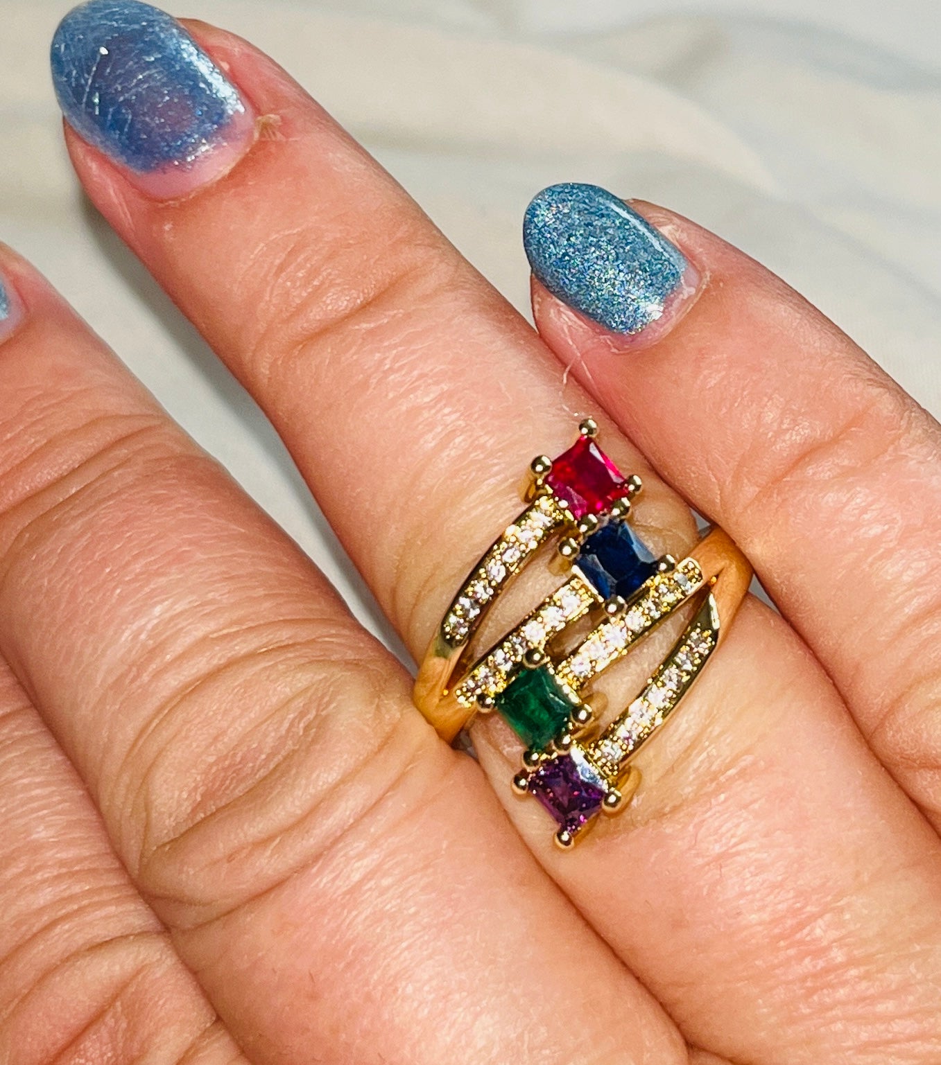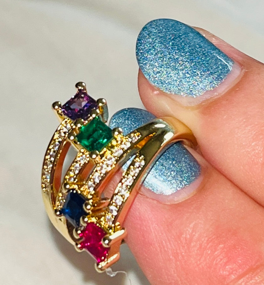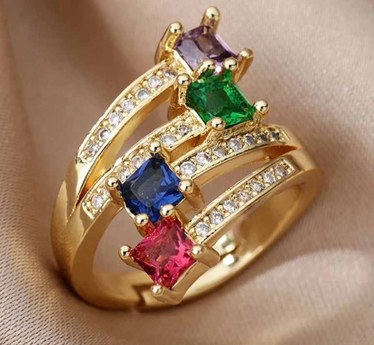 Rainbow Square Zircon Multi-Layer Ring