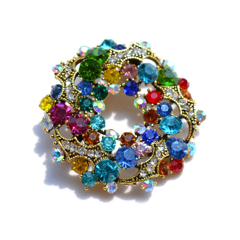 Rhinestone Seasonal Wreath Brooch & Pendant
