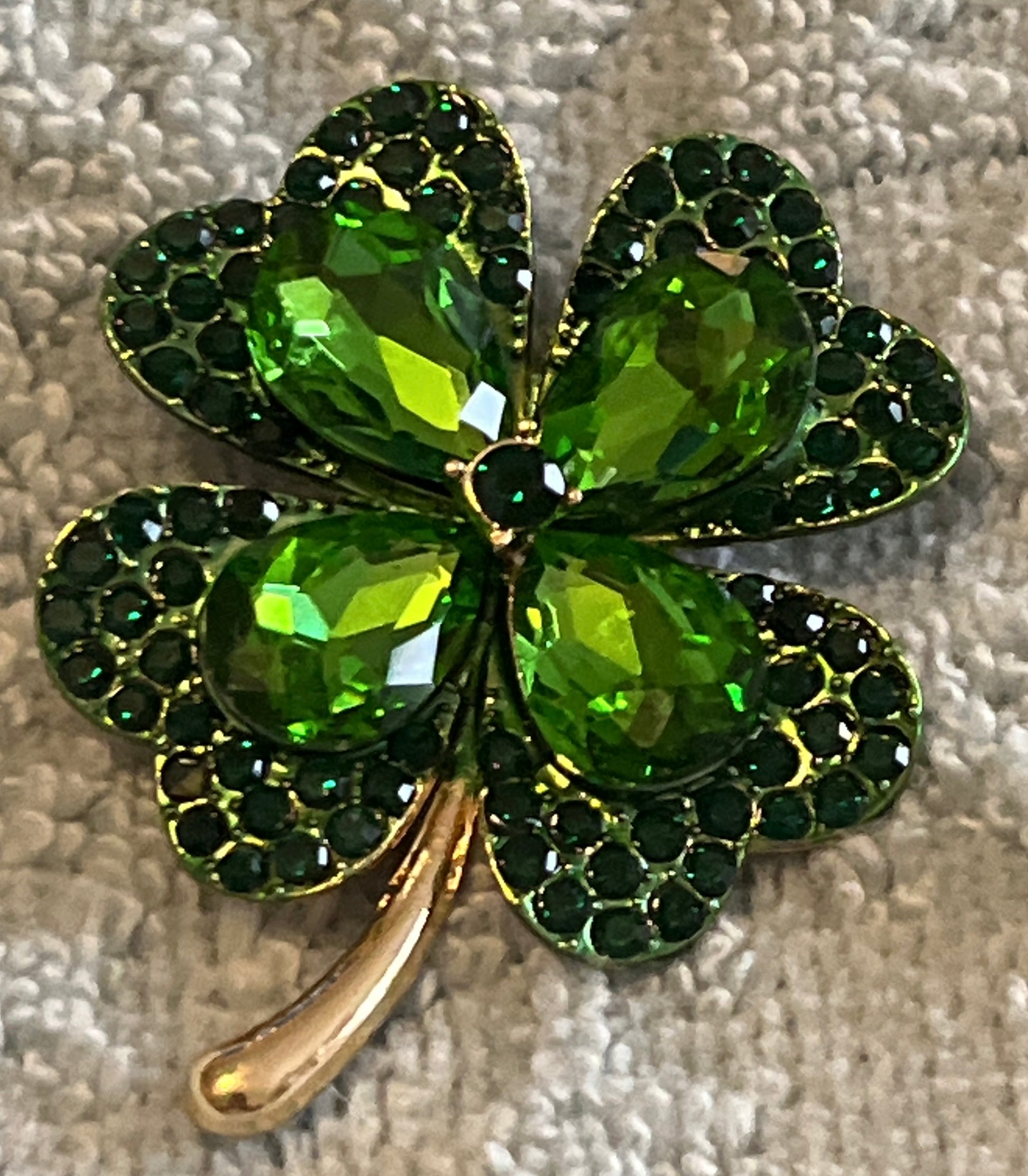 Rhinestone Shamrock Brooch