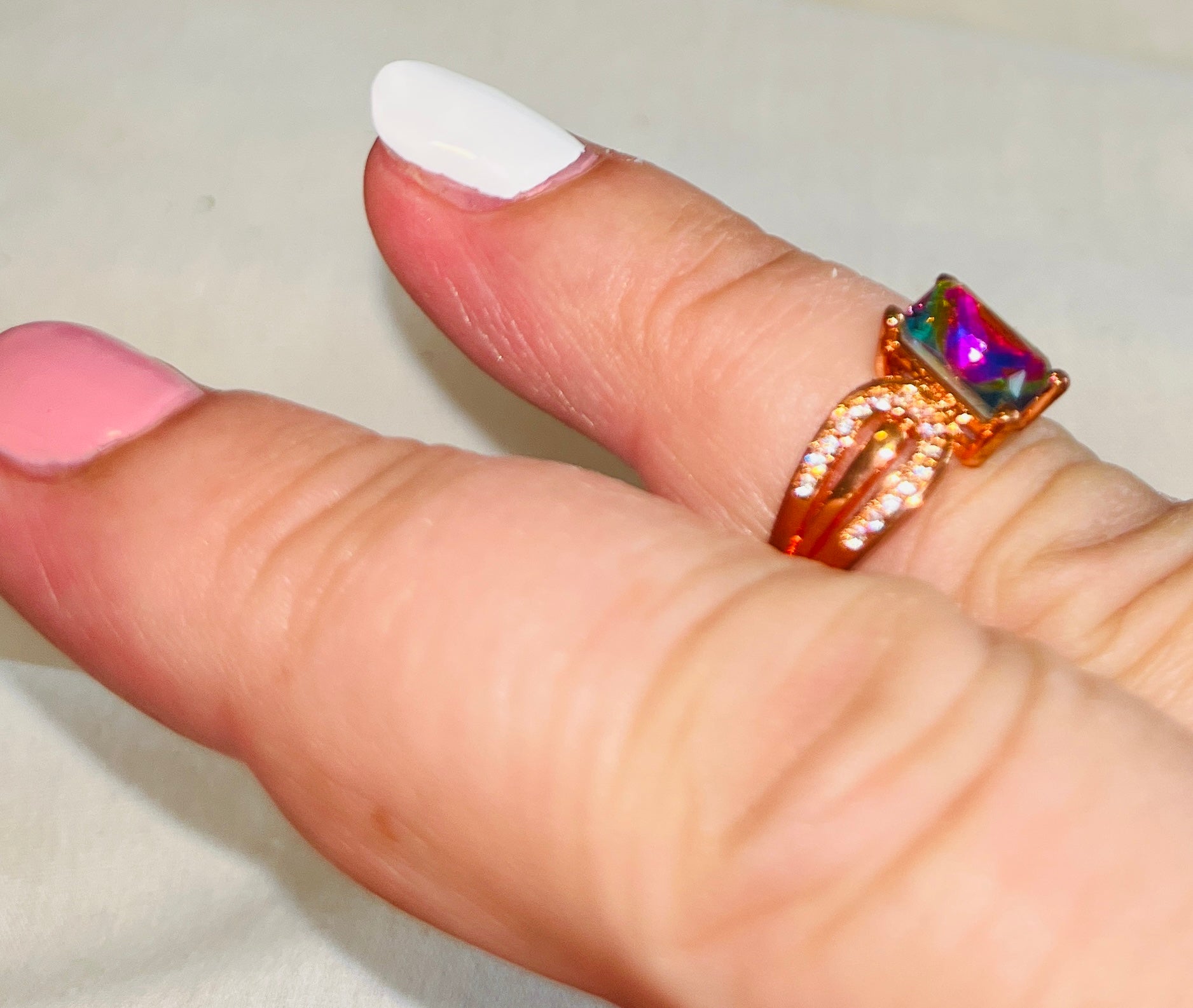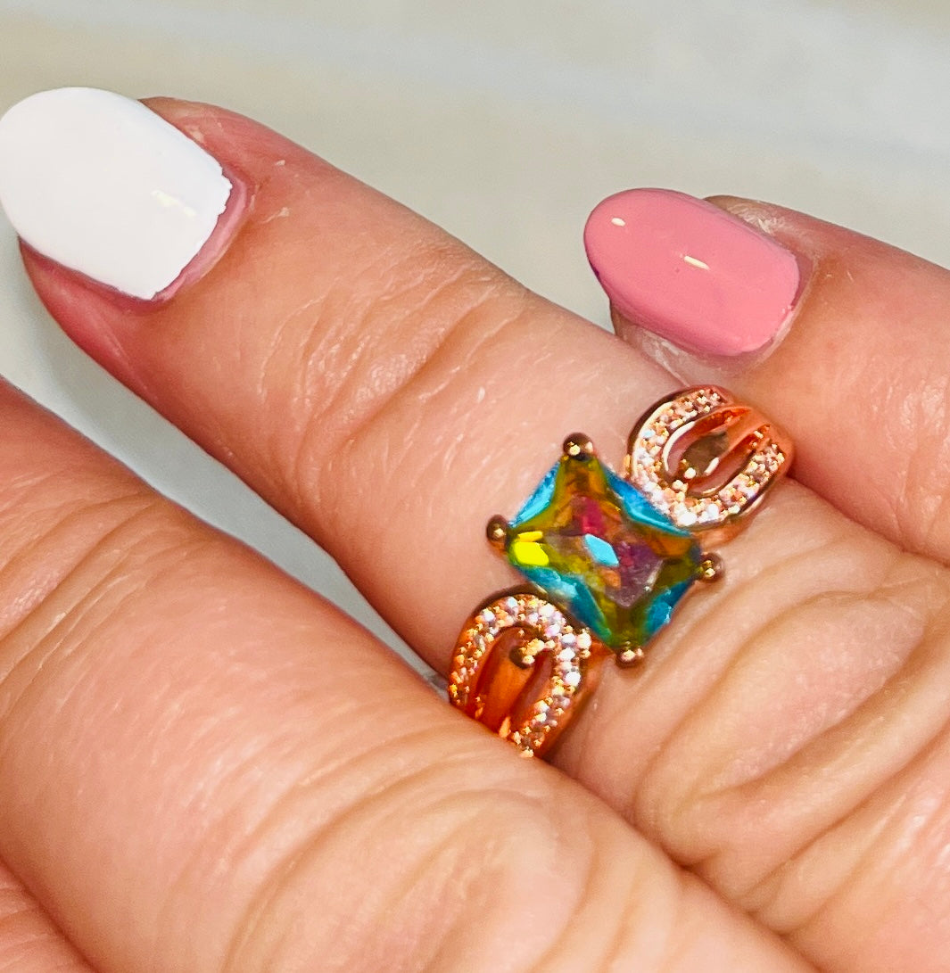 Rose Gold Square Cut Topaz Ring