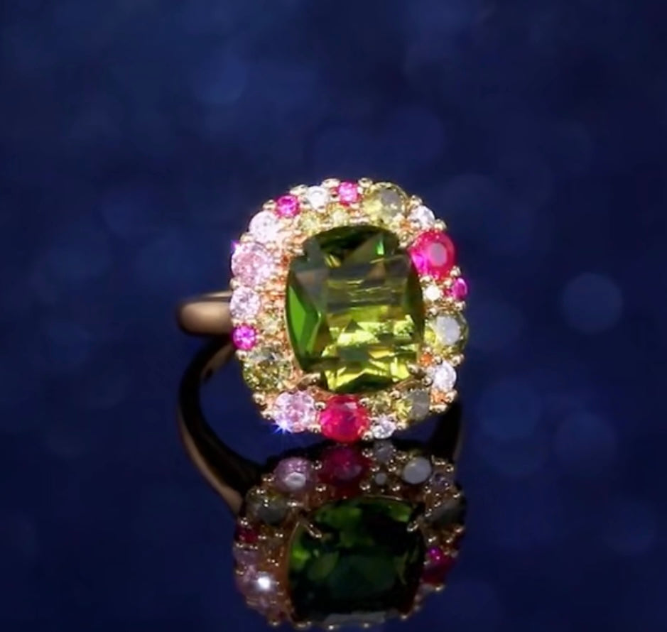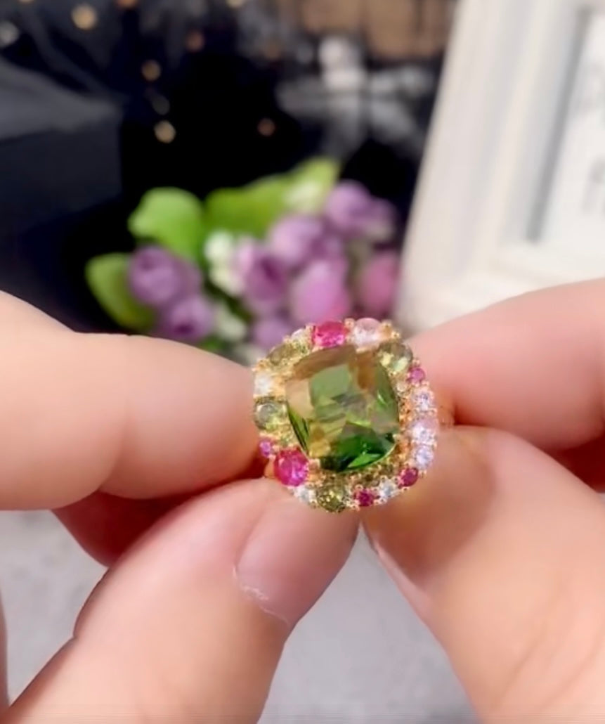 Vintage Sage Green Fuchsia Crystal Ring