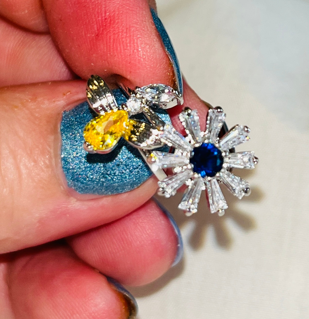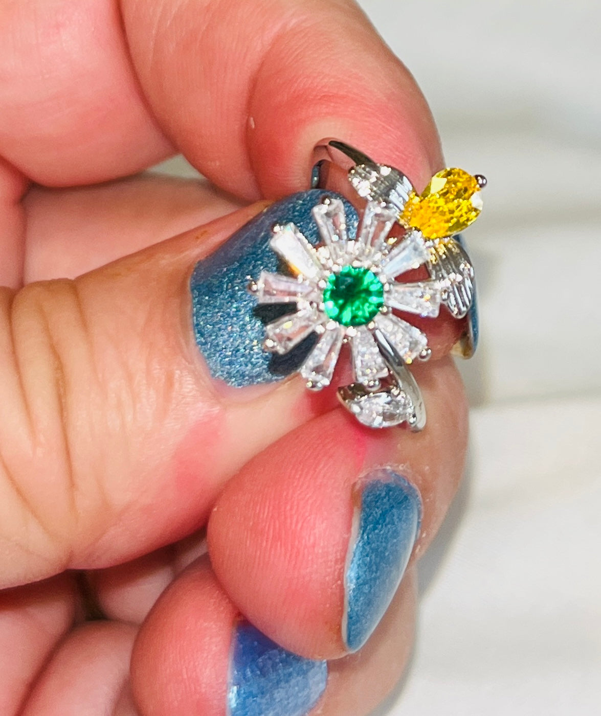 THESE RINGS MOVE! Flower spins. See our video on Instagram. Great for stimming. Silver-tone zinc alloy.